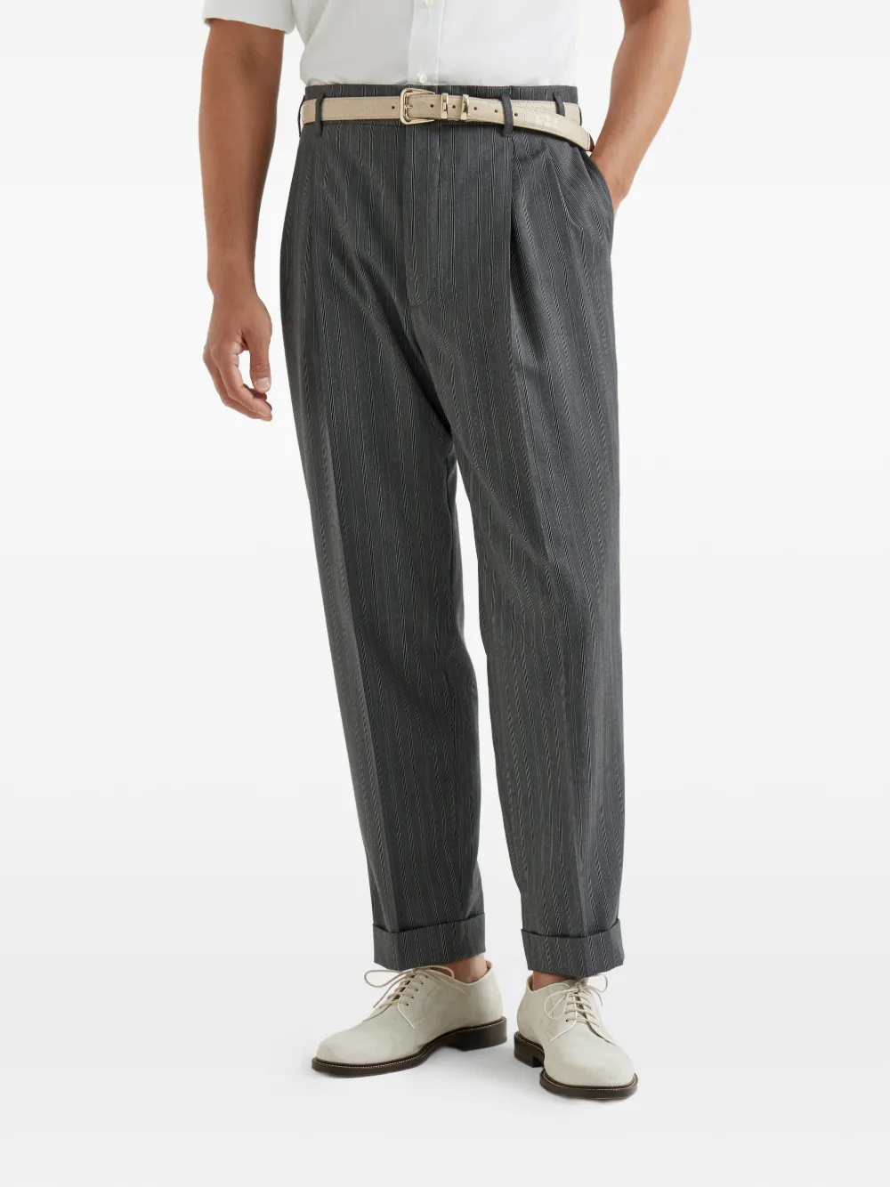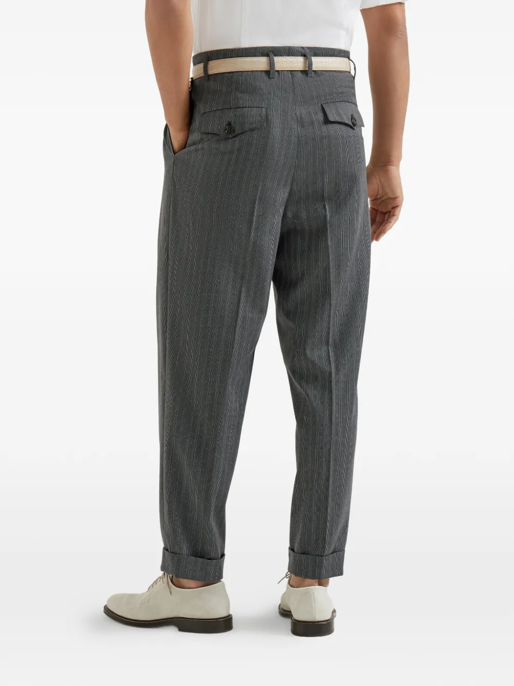 Полосатые брюки со складками Brunello Cucinelli, серый