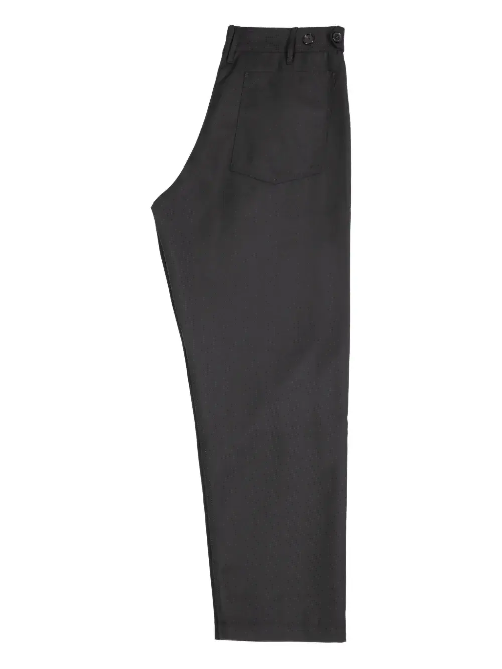 Черный, задний накладной карман, застежка на пуговицы, шлевки для ремня, передние прорезные карманы