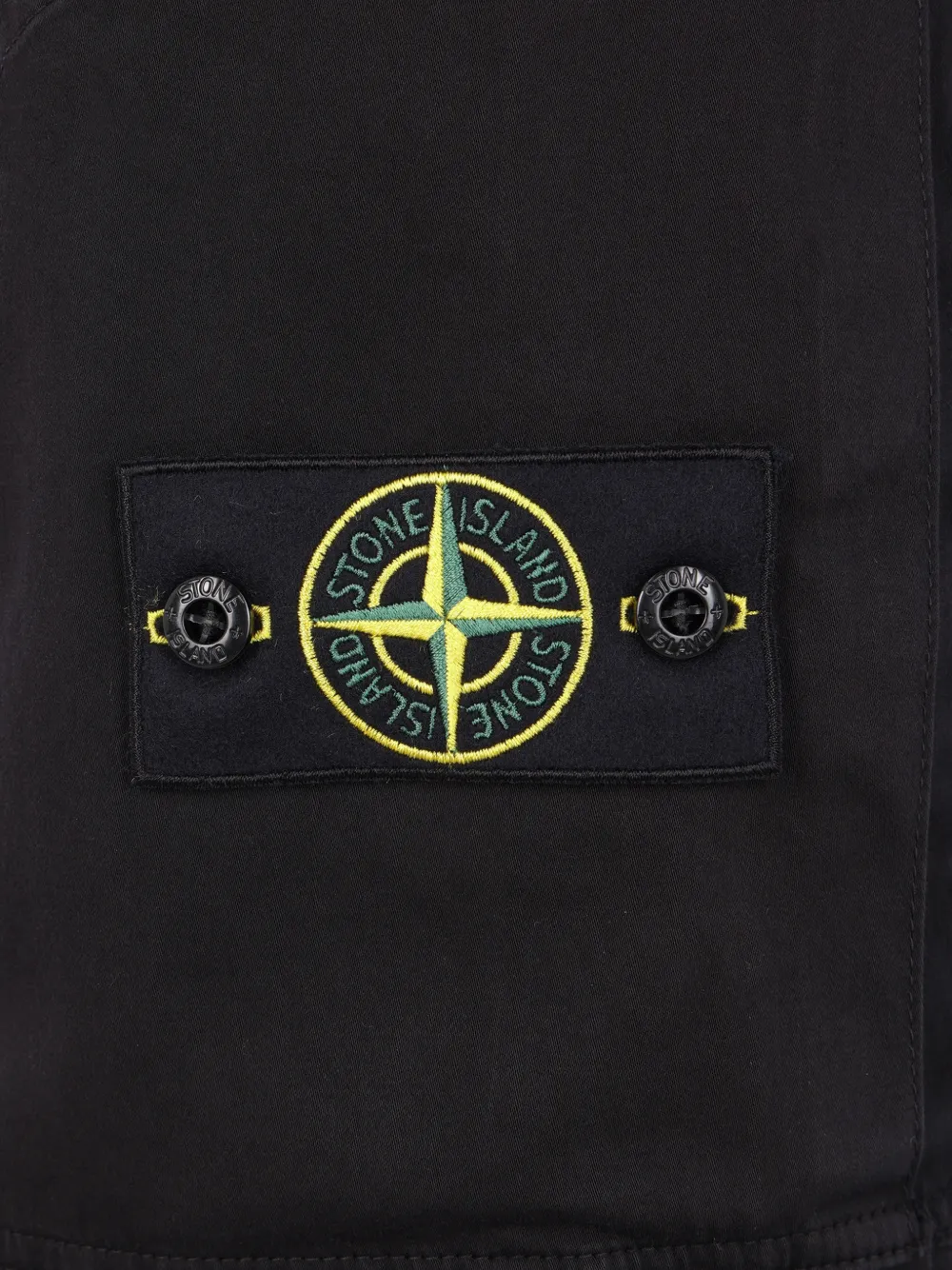 Чёрные карманы карго, застежка на пуговицы, нашивка с логотипом