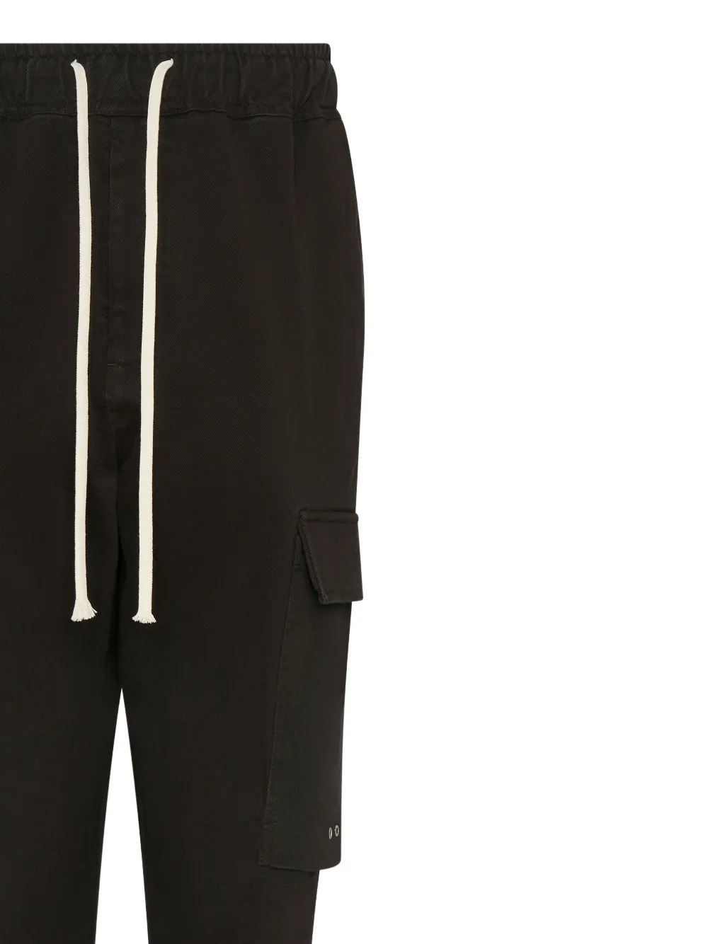 Черная эластичная поясная резинка, боковые карманы карго, задний прорезной карман, логотип сзади