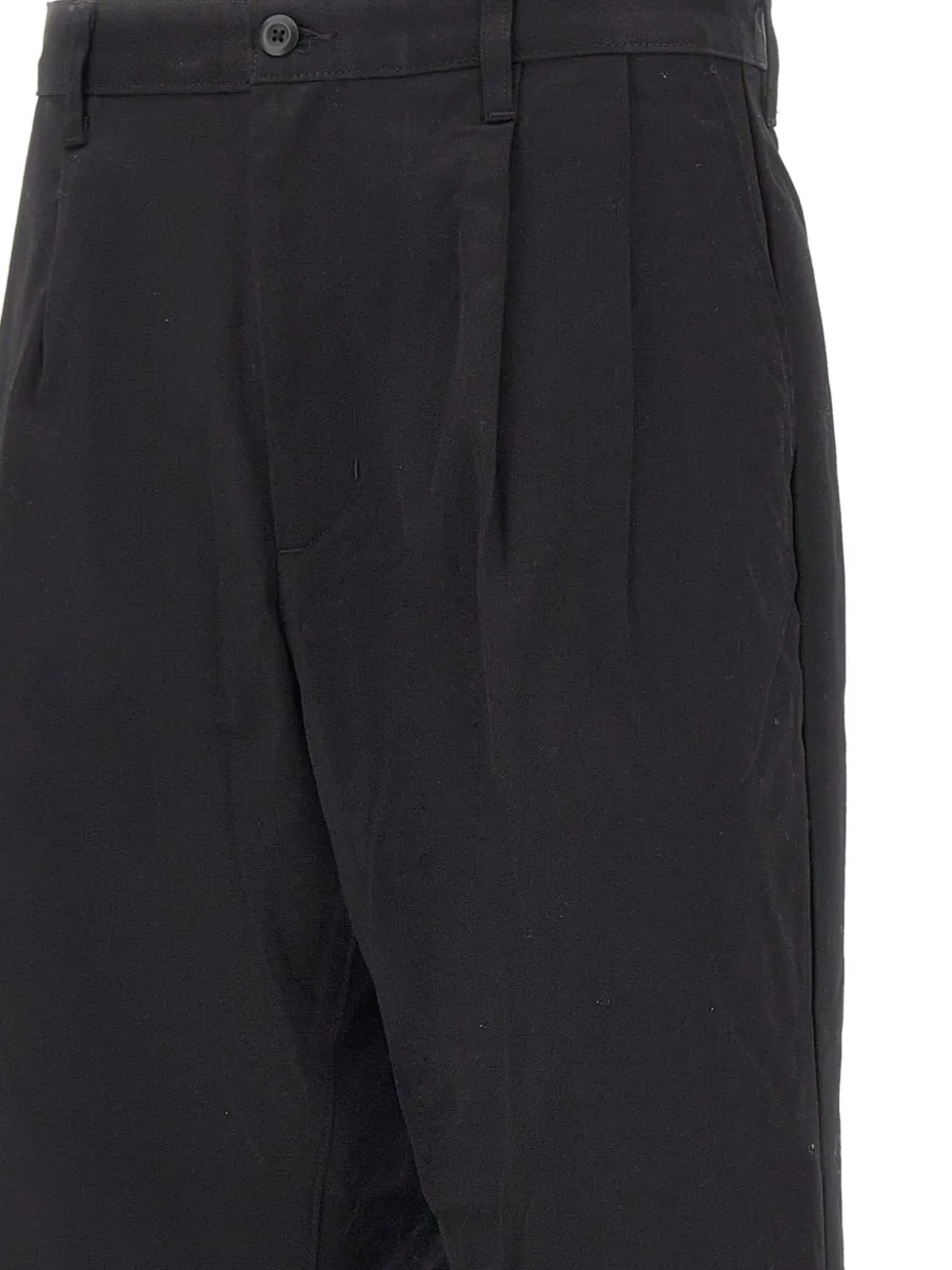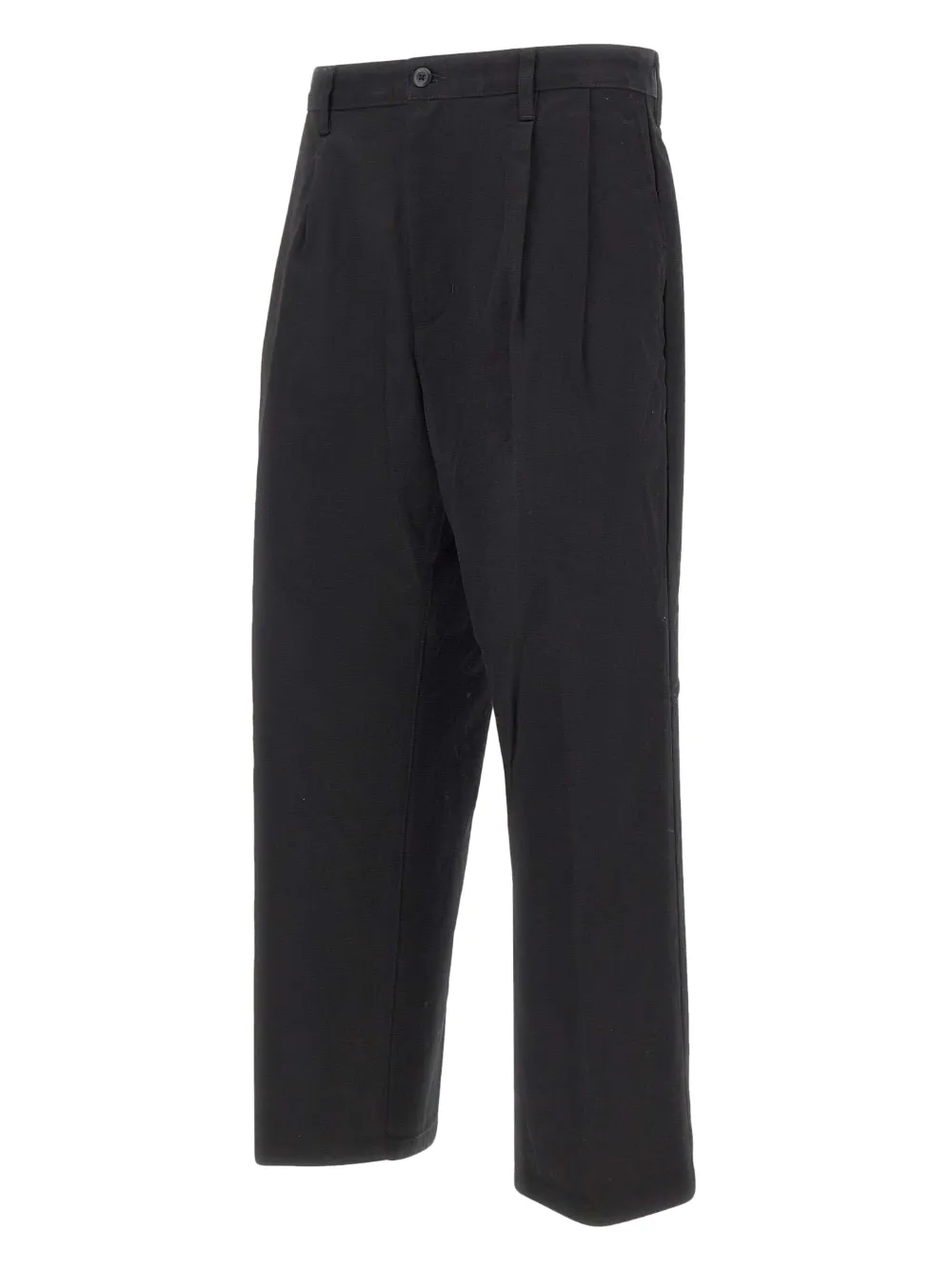 Черные шлевки, передние вытачки, квадратная тканая нашивка, застежка на молнии и пуговице