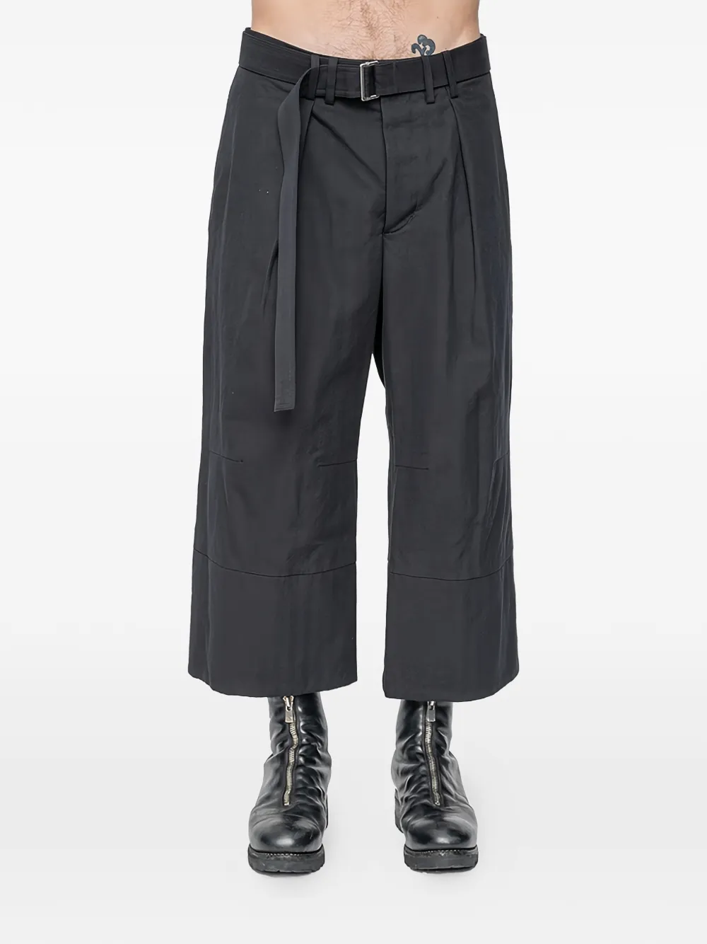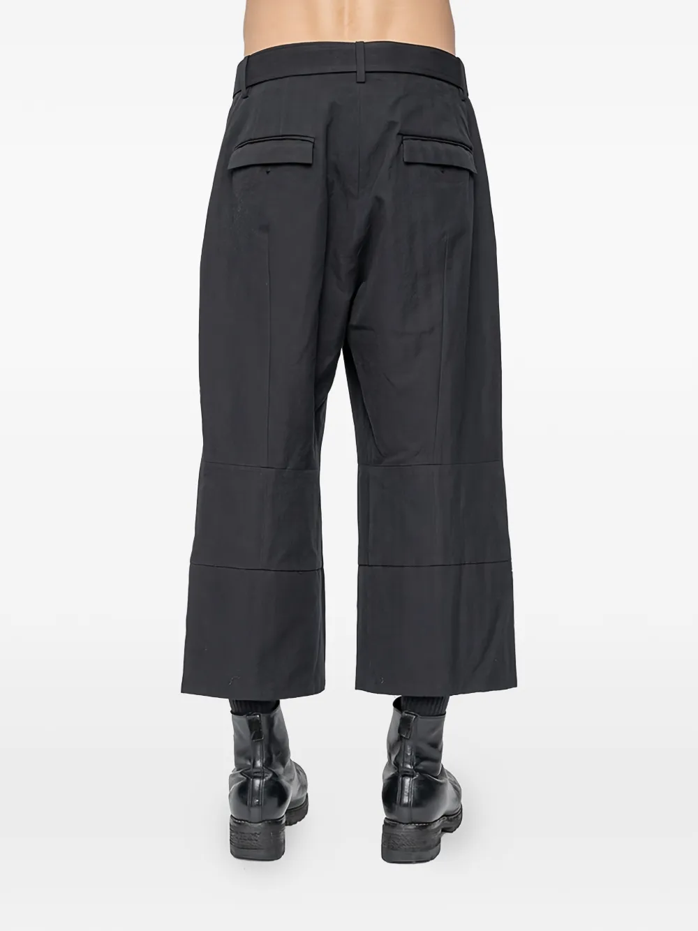 Черный ремень, плиссированная задняя часть, накладные карманы сзади, шлевки для ремня