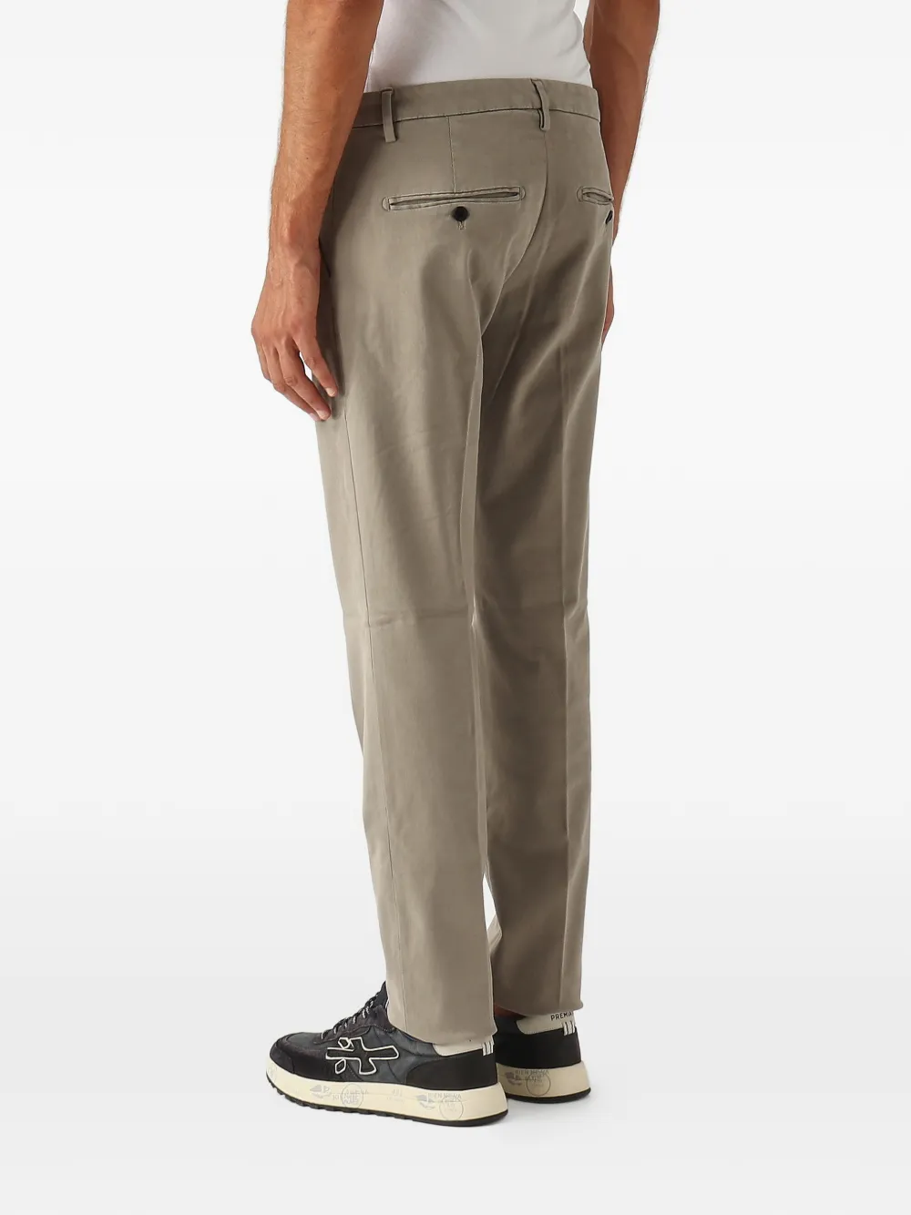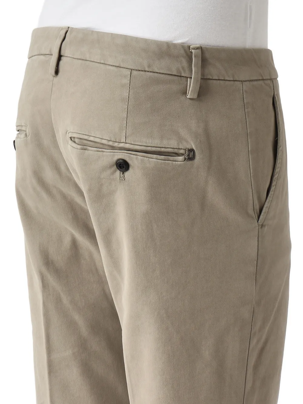 Светло-коричневый, застегивается на пуговицы, шлевки для ремня, задний карман на пуговице, боковой прорезной карман, прямой крой