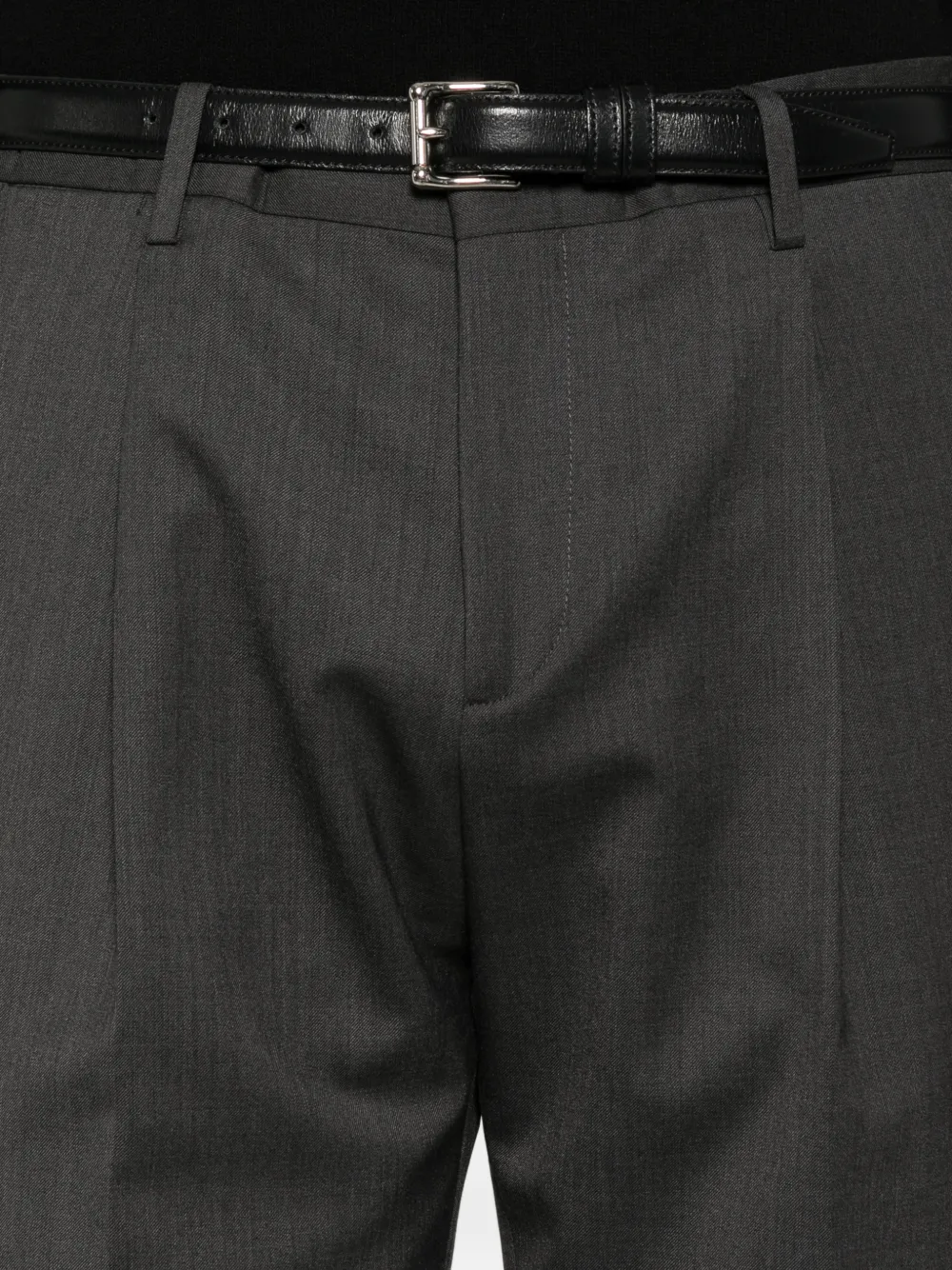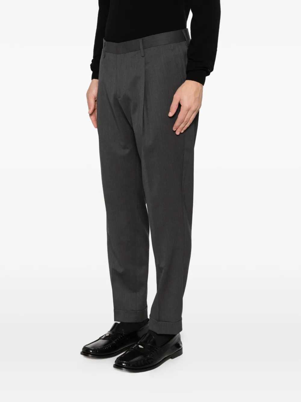 Темно-серый, шлевки для ремня, складки, застежка на пуговицу и молнию