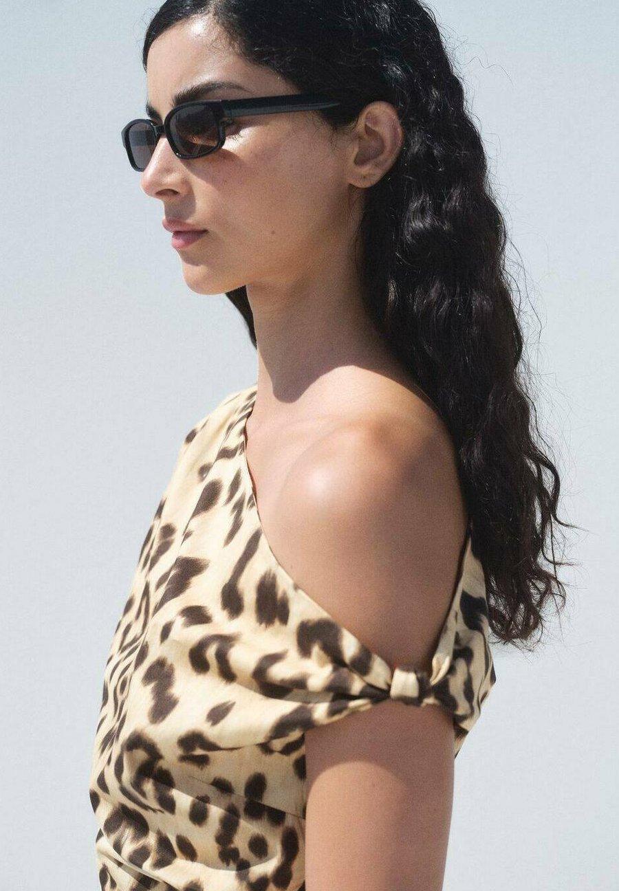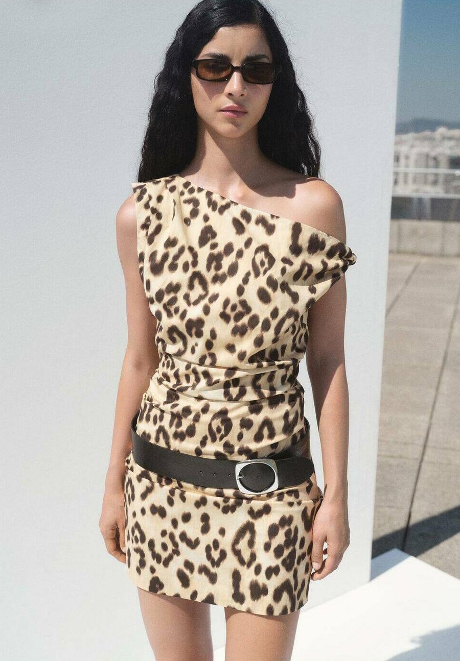 Платье Mango ASYMMETRICAL ANIMAL-PRINT, Beige