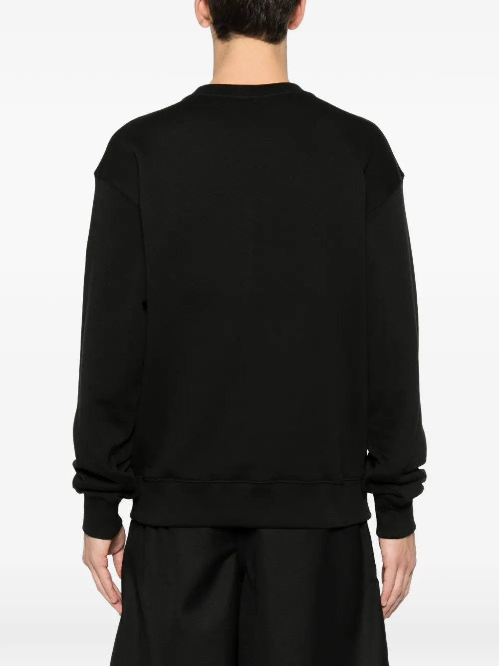Чёрный свитшот с графической вышивкой, круглым вырезом, длинными рукавами и рубчатыми манжетами