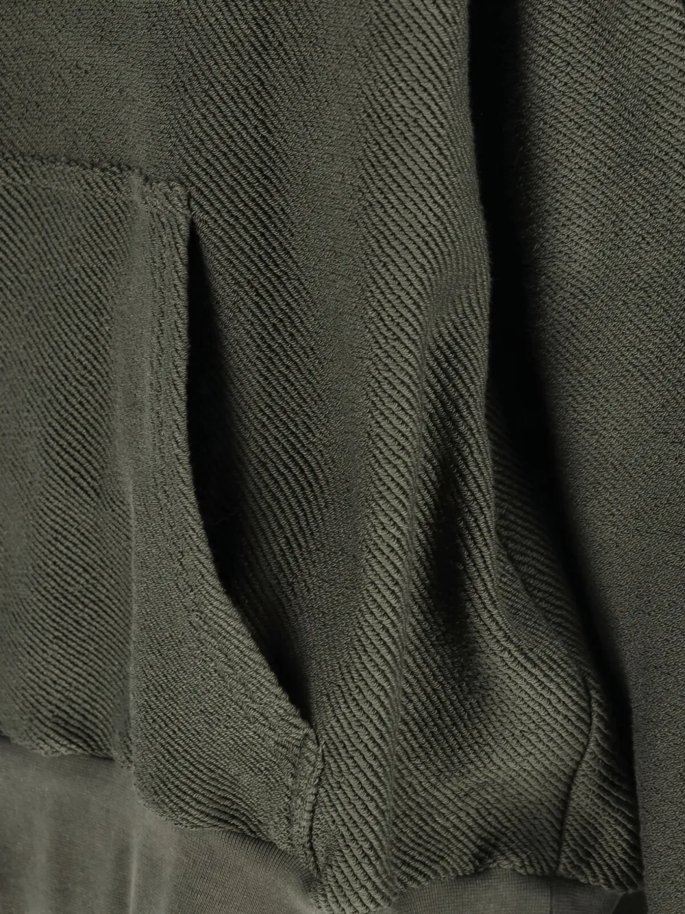 Зеленый текстурированный трикотажный худи с капюшоном, карманом-кенгуру, ребристыми манжетами и ребристым подолом