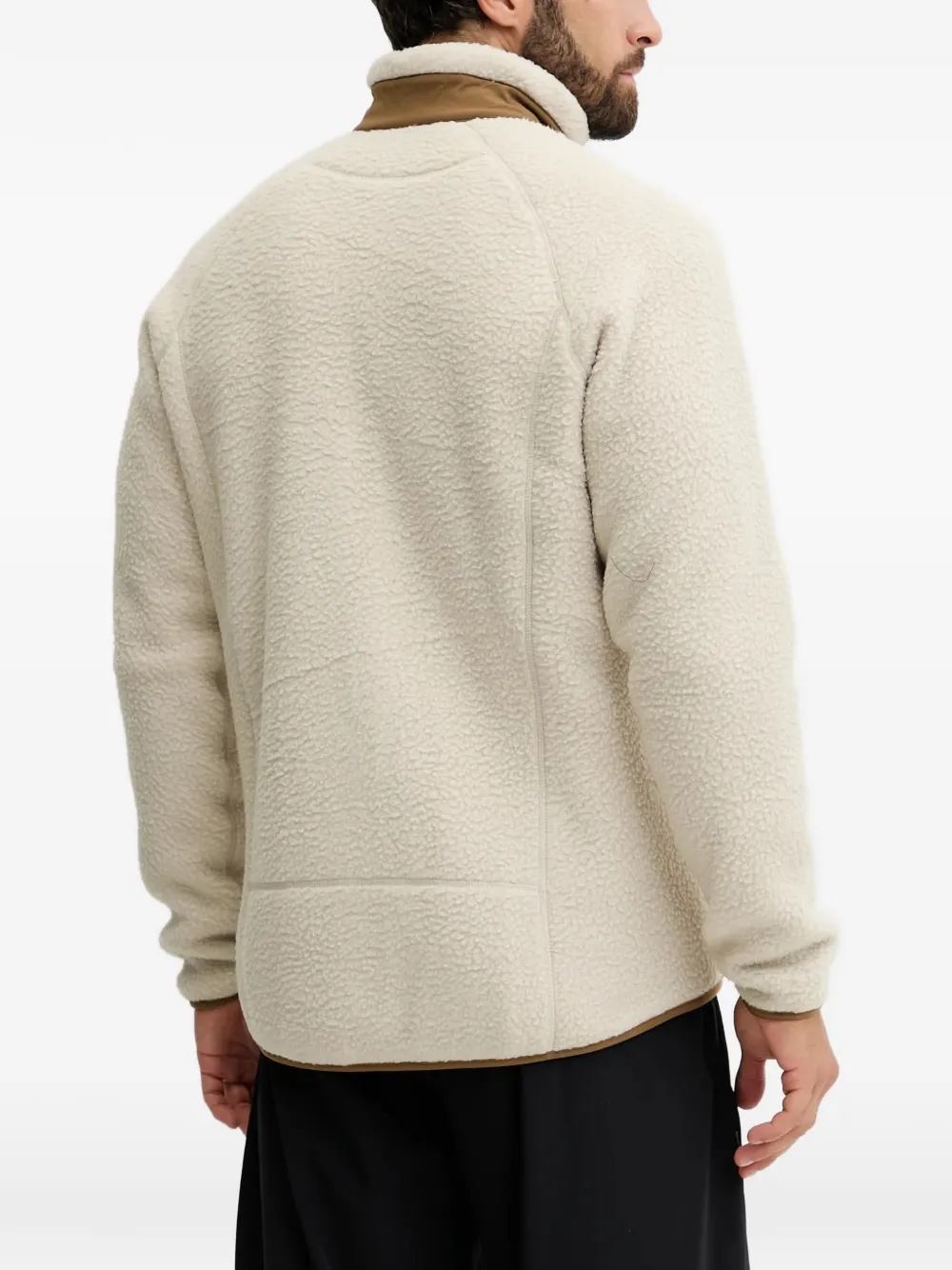 Кремовый цвет, нагрудный карман, застежка-молния, воротник-стойка, длинные рукава, нашивка с логотипом