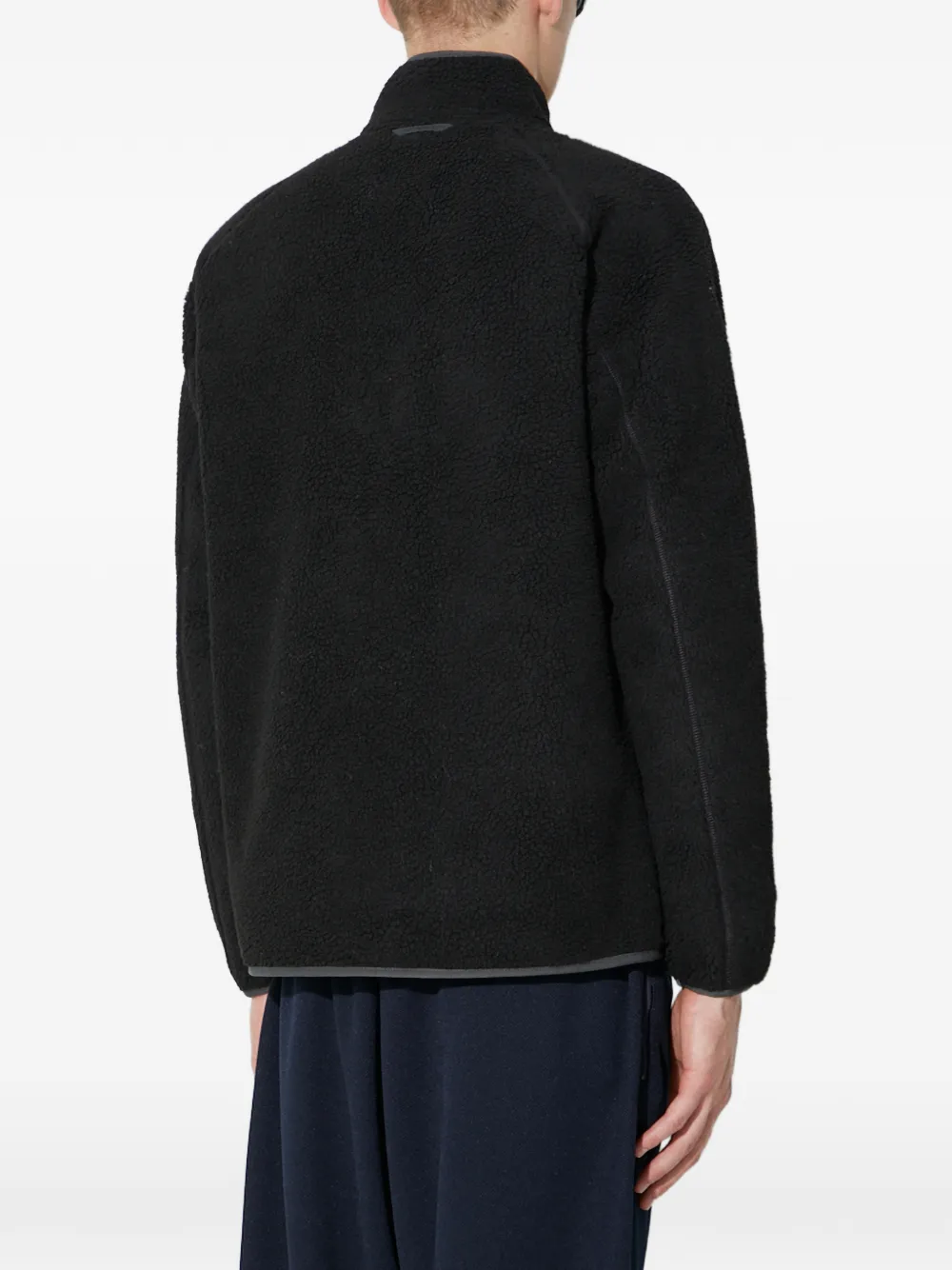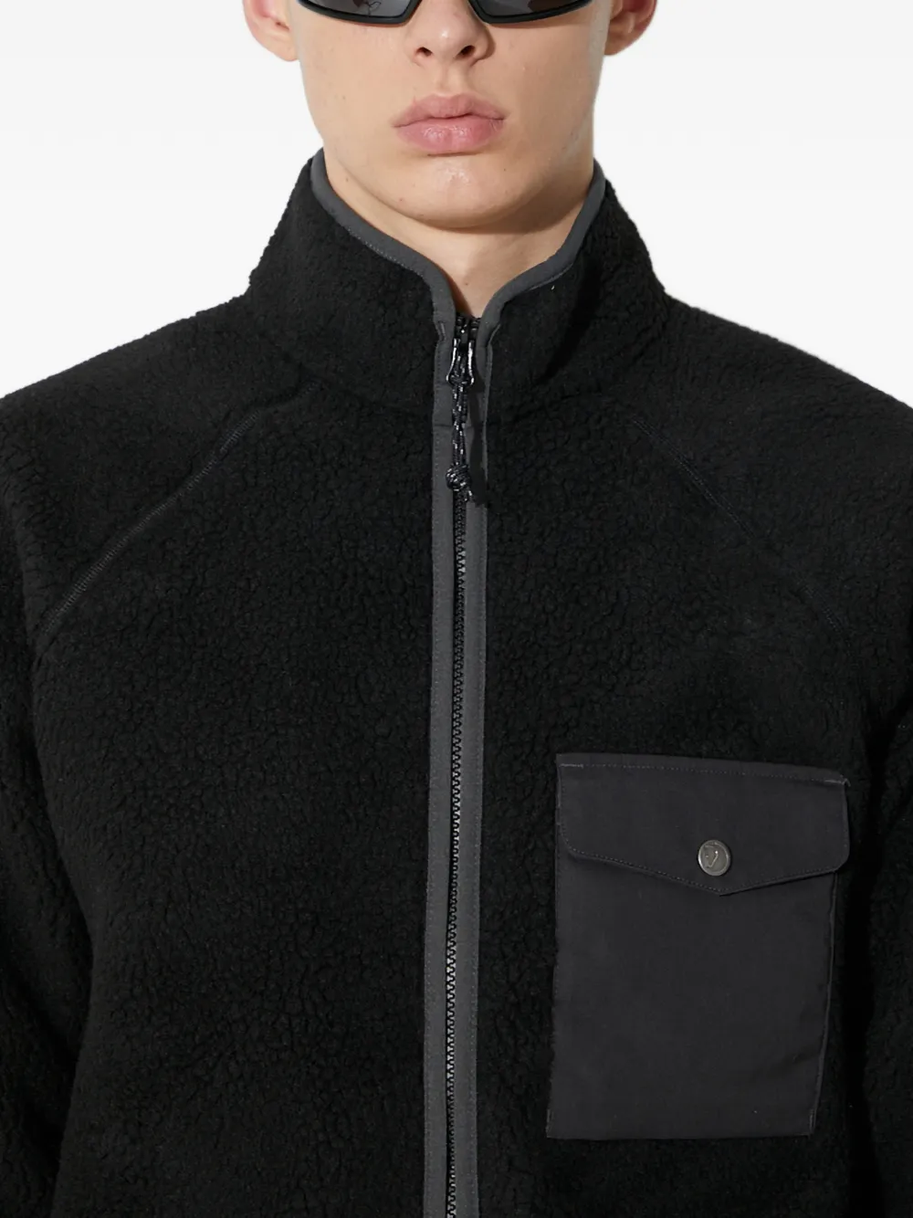 Чёрный цвет, нагрудный карман, застёжка-молния, высокий воротник, отделка, длинные рукава