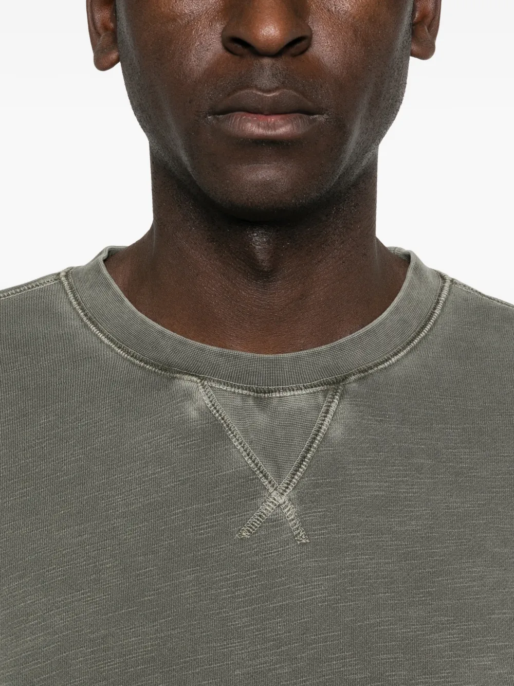 Серый джемпер с круглым вырезом, длинными рукавами, ребристым подолом и манжетами, небольшим логотипом