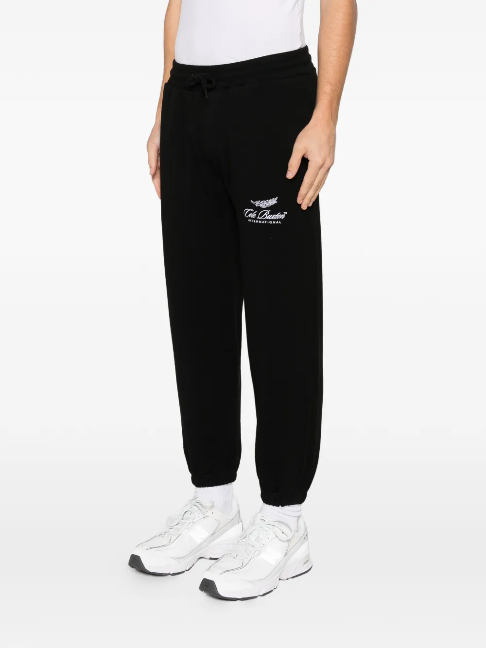 Чёрные брюки с логотипом, на кулиске, с эластичными манжетами и боковыми карманами