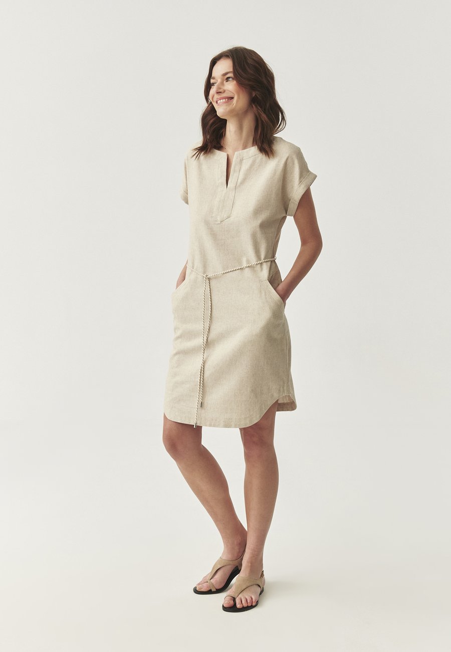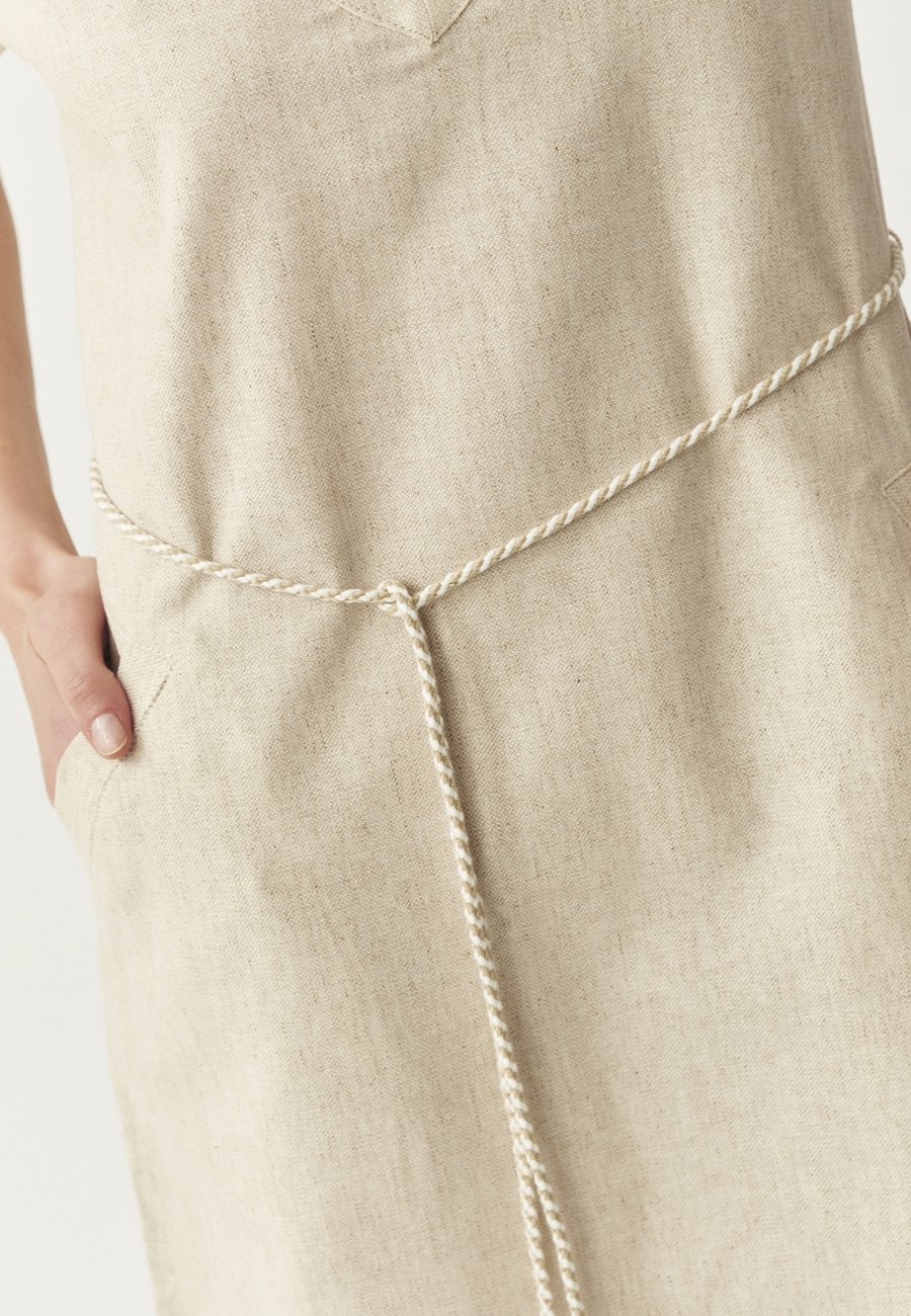 Материал пояса: 74% хлопок, 26% лен. Вырез горловины: низкий V-образный.Материал и уход