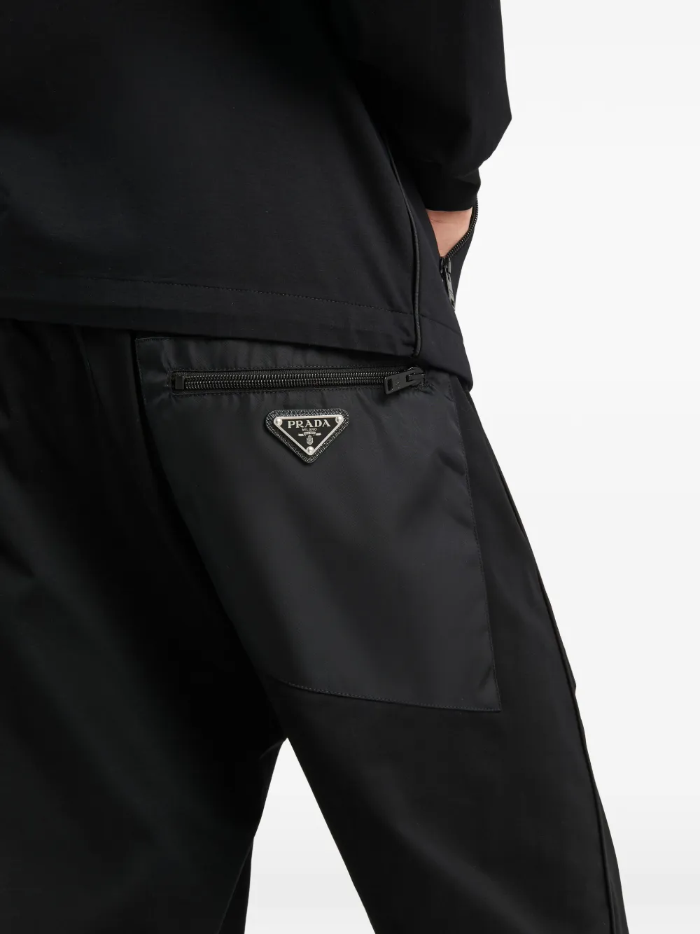 Чёрные брюки с эластичным поясом на кулиске, треугольным логотипом и карманом на молнии