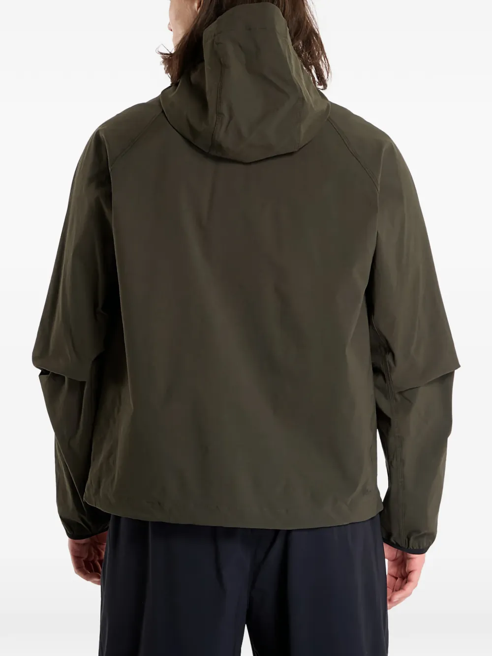 Зеленый цвет, застежка-молния, капюшон, боковые карманы на молнии, однотонный логотип, длинные рукава