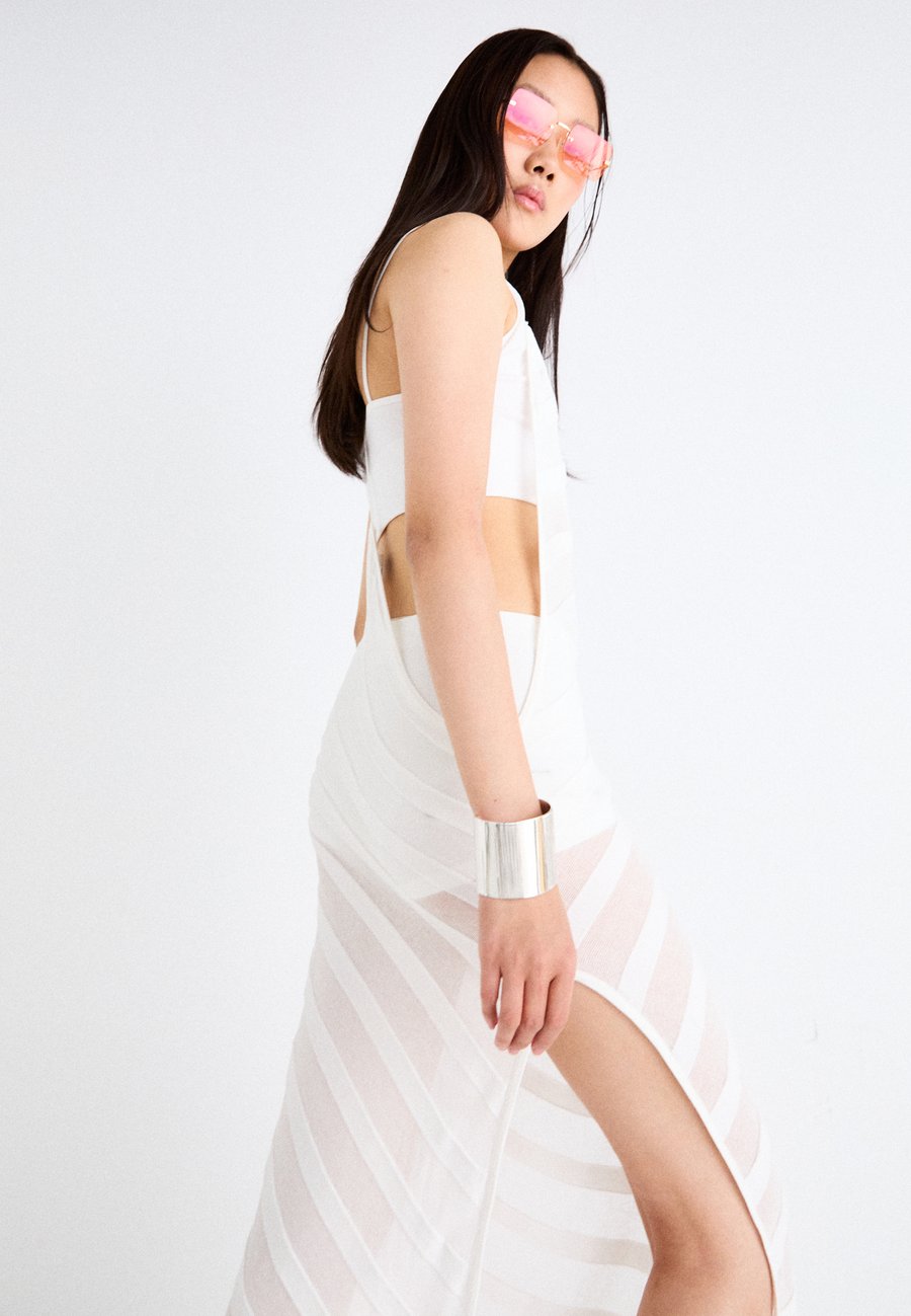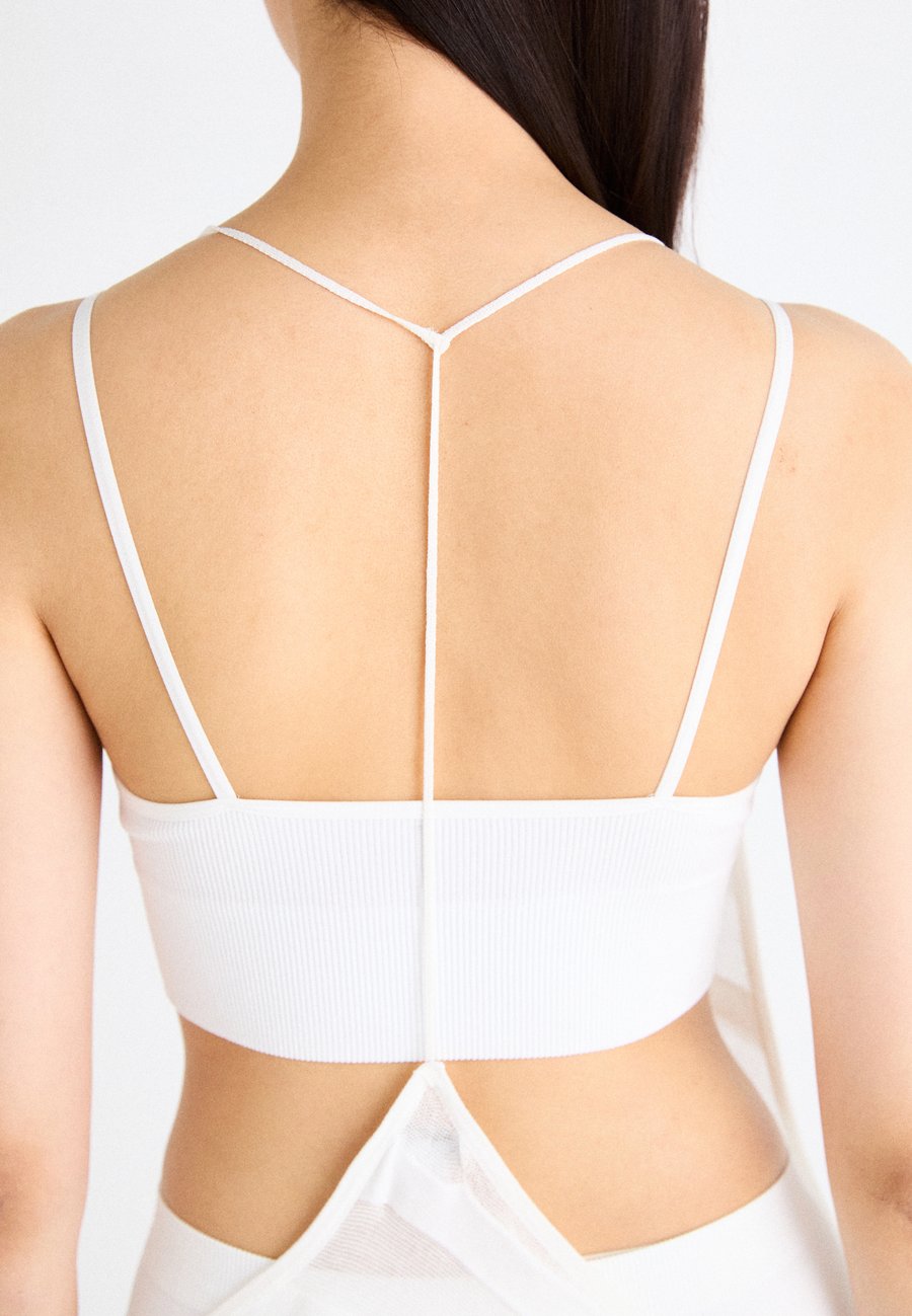 Открытая спина с центральной бретелькой, вырезы по бокам. Вырез горловины: Круглый.Материал и уход