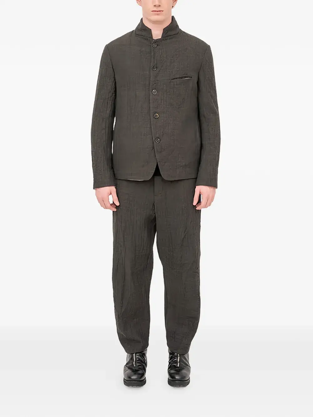 Серый кардиган на пуговицах с воротником-стойкой и нагрудным прорезным карманом