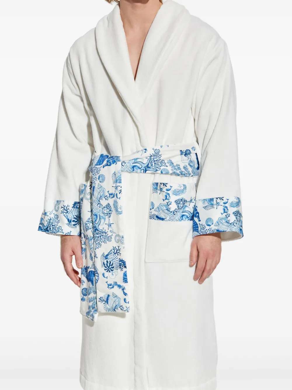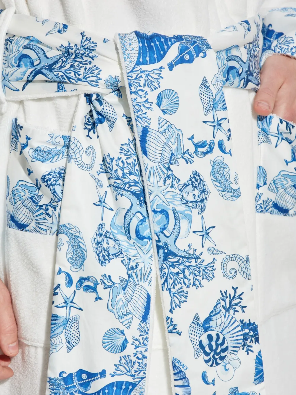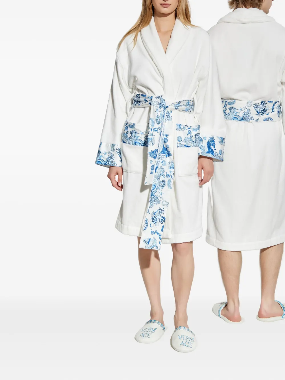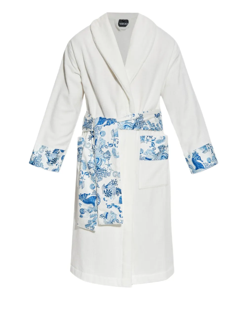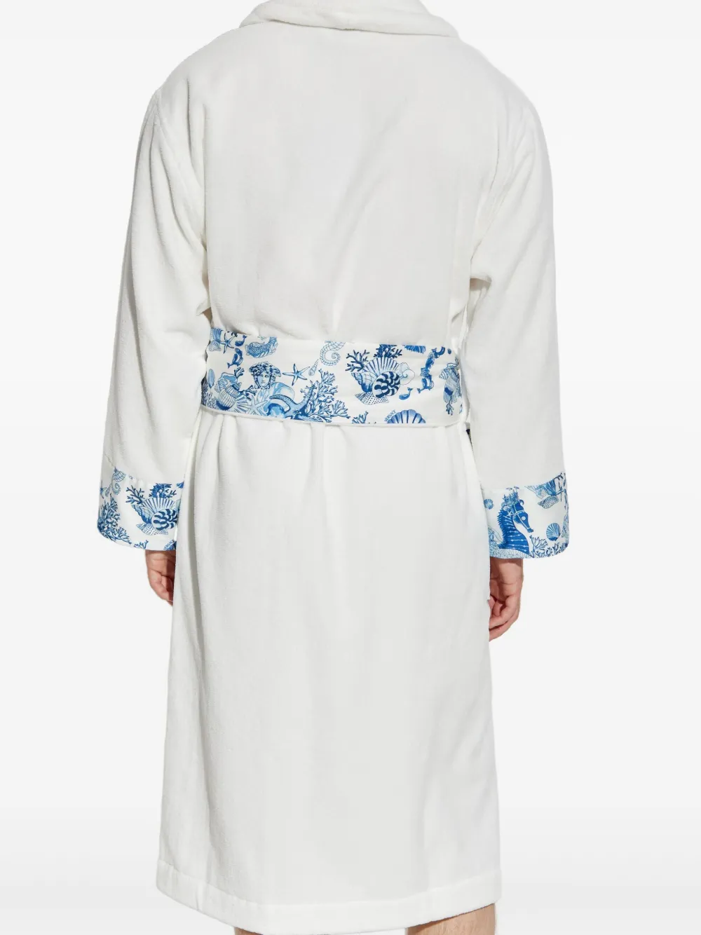 Халат с цветочным принтом и поясом Versace, белый