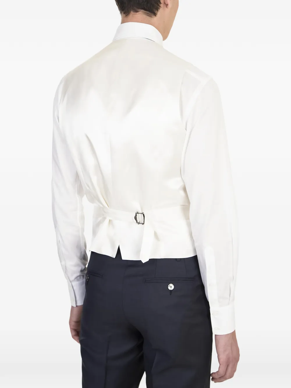 Белый жилет на пуговицах с прорезными карманами, регулируемым ремешком сзади, V-образным вырезом и без рукавов