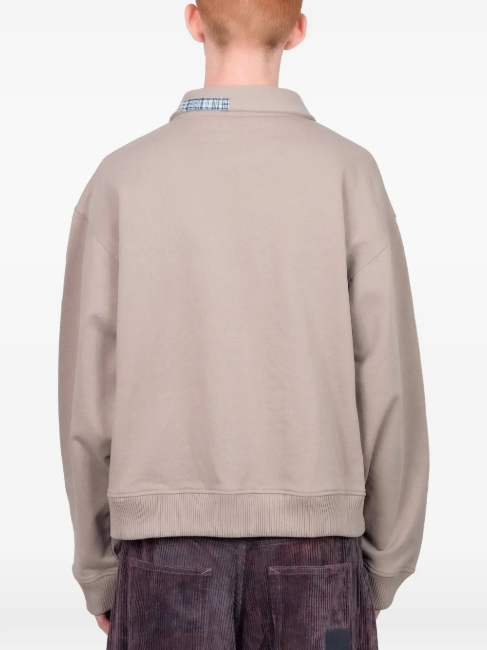 Серые клетчатые вставки, отложной воротник, застежка на пуговицы, два накладных кармана спереди, ребристый низ