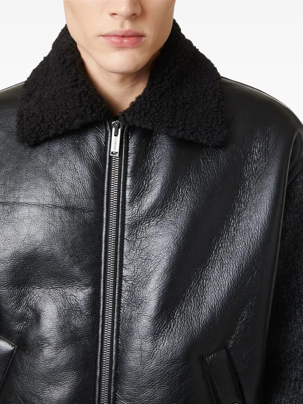 Бомбер на молнии с воротником из овчины Iceberg, черный