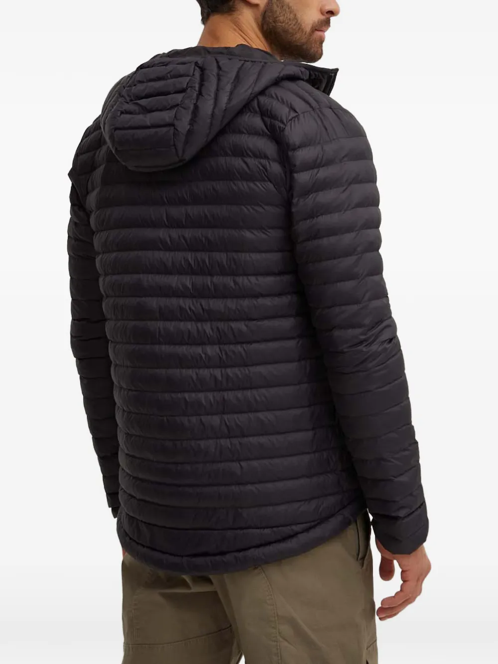 Черная стеганая куртка с капюшоном, застежкой-молнией, логотипом и горизонтальной простежкой