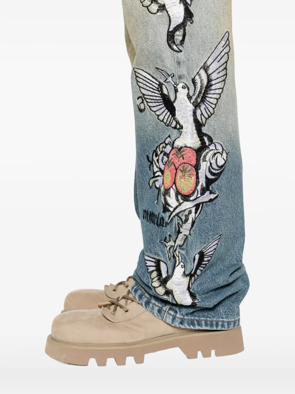 Джинсы с вышивкой «Голубь» Who Decides War, синий 80 421₽