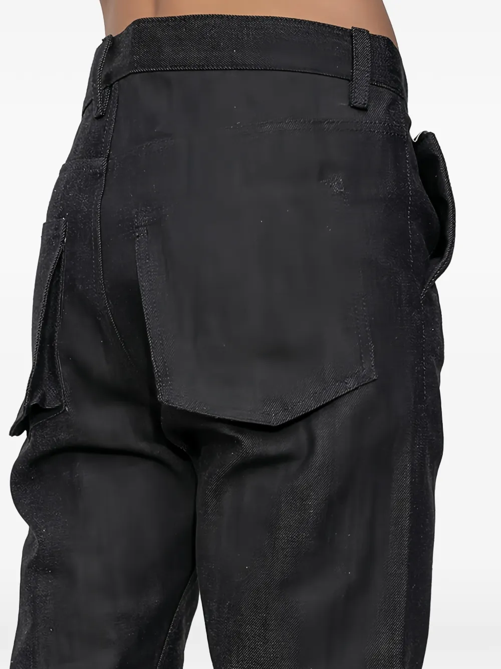 Серые брюки с подворотами и двумя боковыми прорезными карманами
