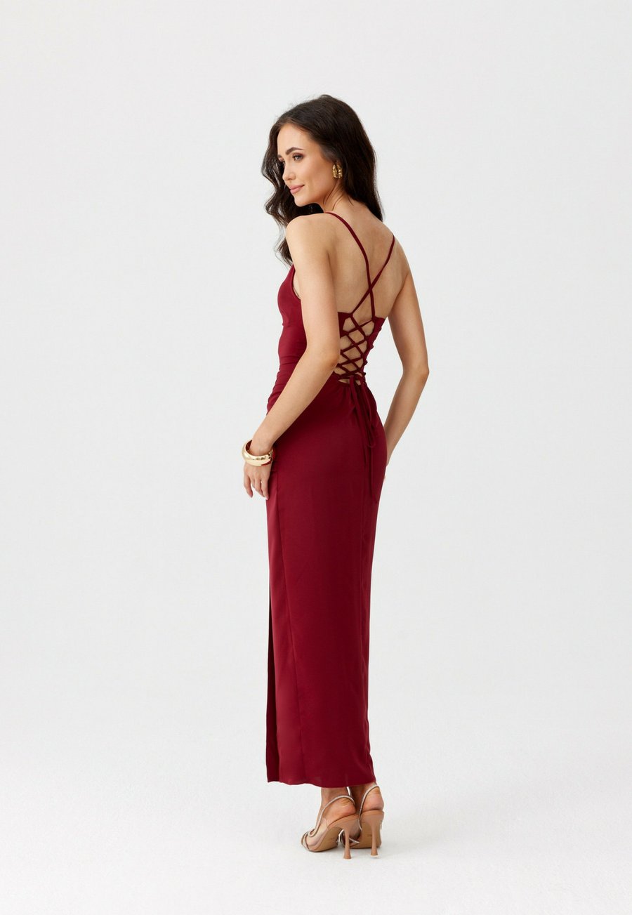 Ария - это исключительно элегантное платье из мягкого мерцающего материала, который красиво драпируется на силуэте. Тонкие бретельки и ниспадающий вырез деликатно подчеркивают плечи и линию груди, добавляя легкости образу. Глубокий вырез на спине с корсетной шнуровкой привлекает внимание и обеспечивает идеальную посадку. Сборки на талии визуально подчеркивают фигуру, а женственный разрез на ноге добавляет платью чувственности. Вырез: Открытая спинаМатериал и уход