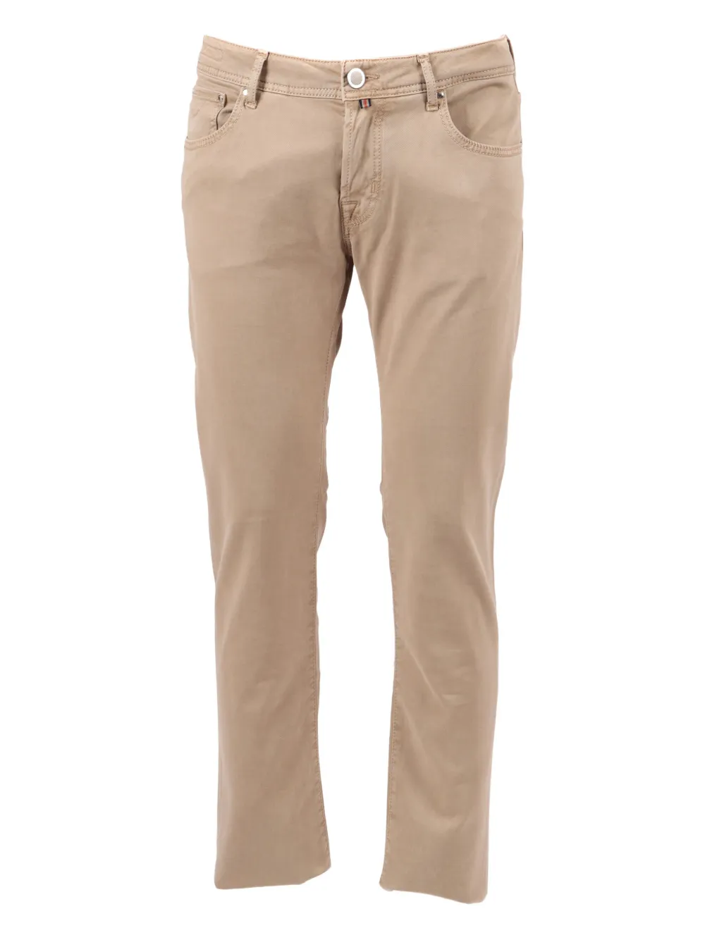 Бежевые классические пять карманов тональная строчка шлевки для ремня застежка на пуговицу нашивка с логотипом сзади