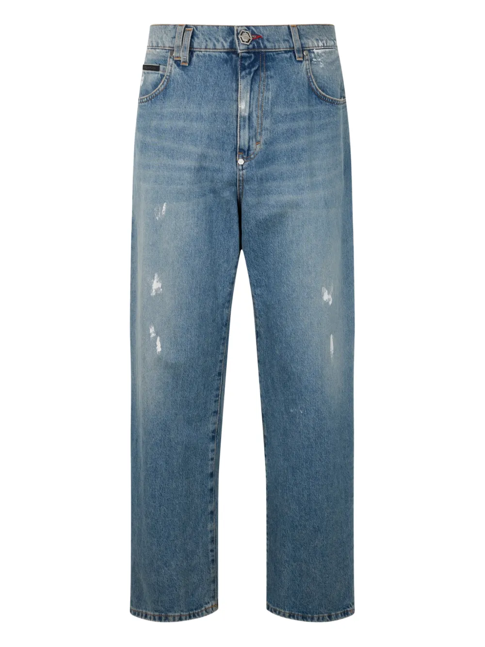 Джинсы с эффектом потертости Philipp Plein, синий 43 173₽