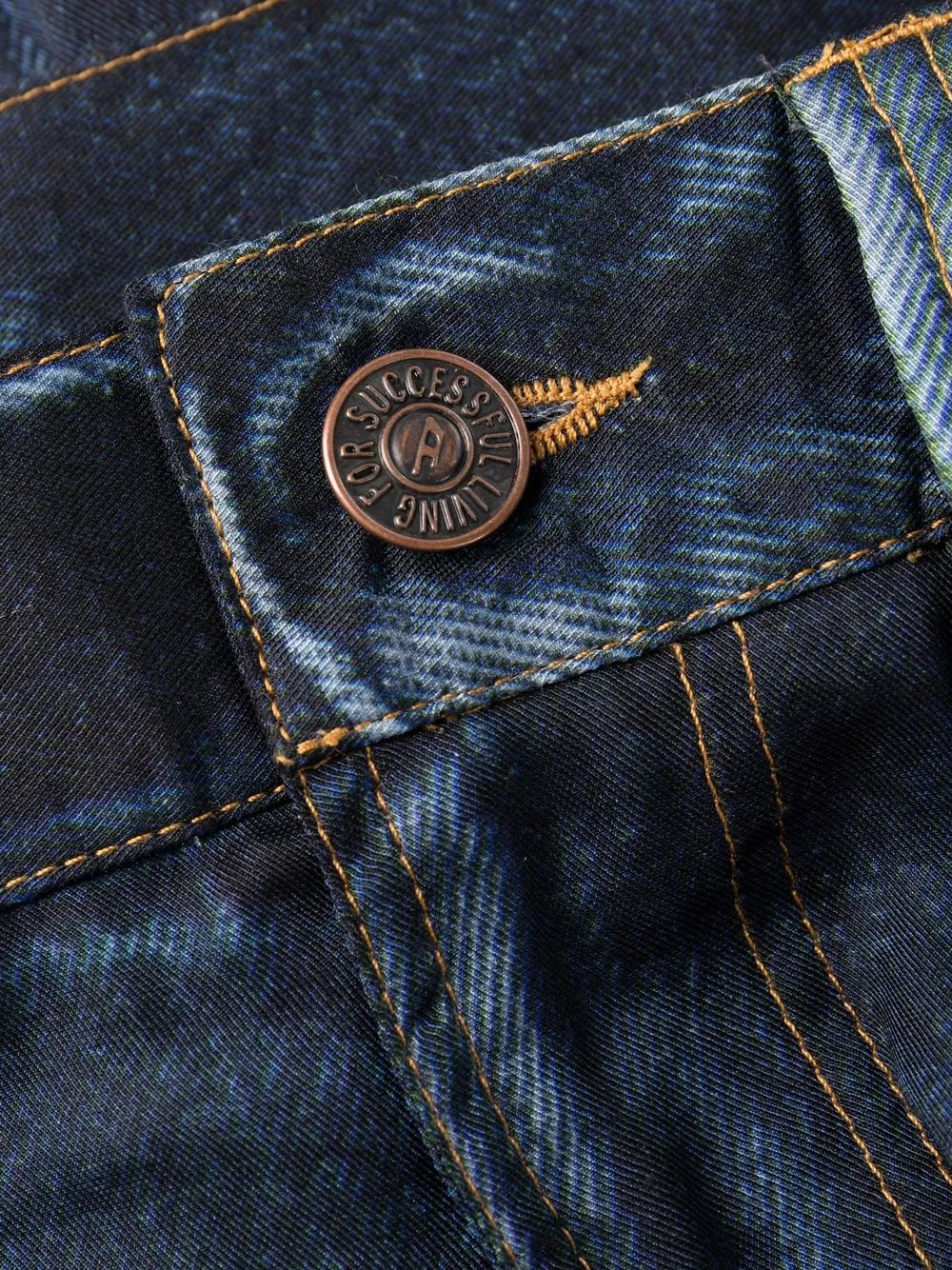 Петли для ремня, потайная застежка спереди, классическая пятикарманная модель, низкий шаговый шов и прямой крой.