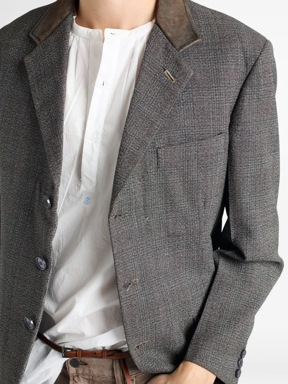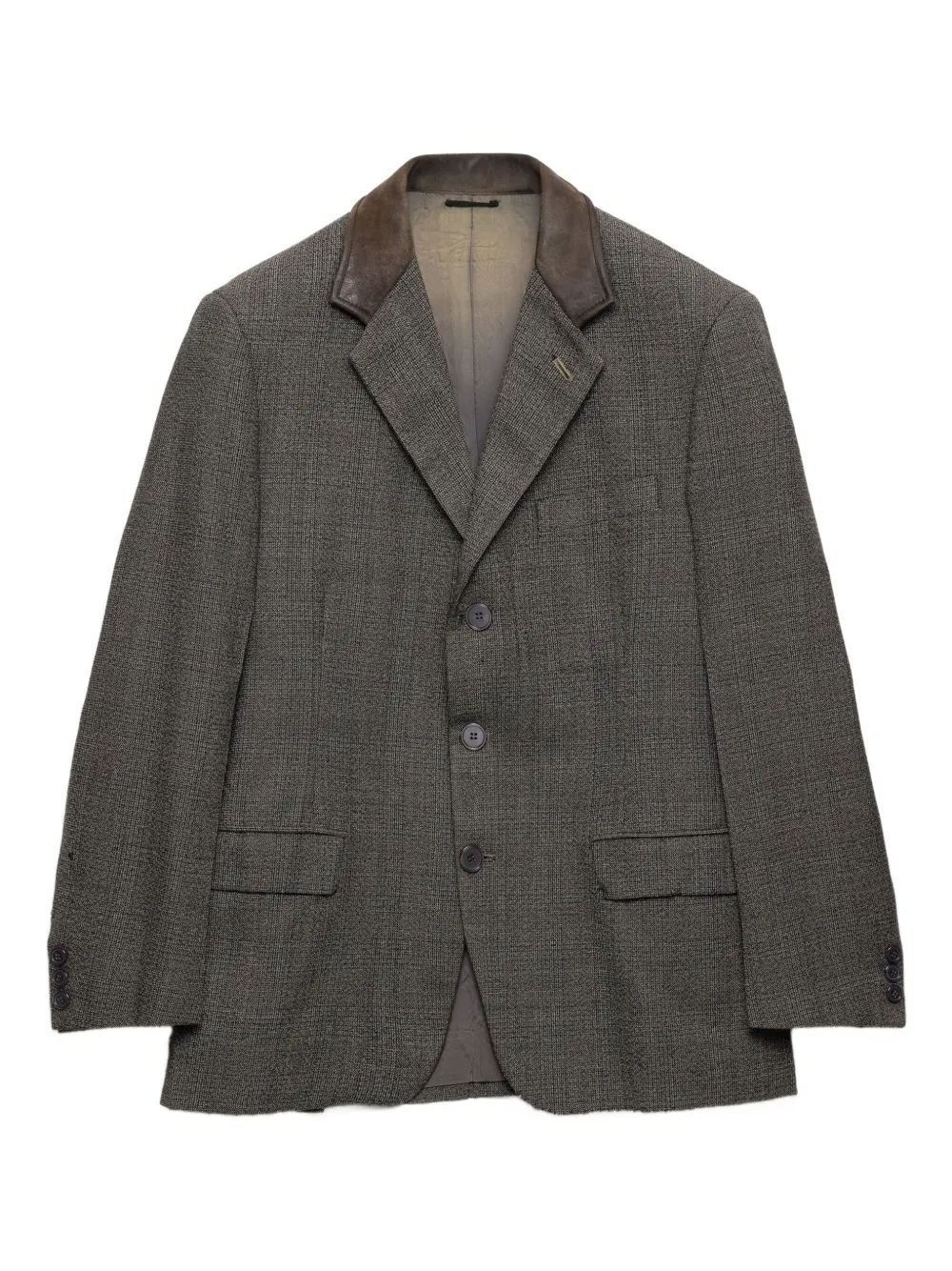 Однобортный пиджак с кожаным воротником Prada, серый