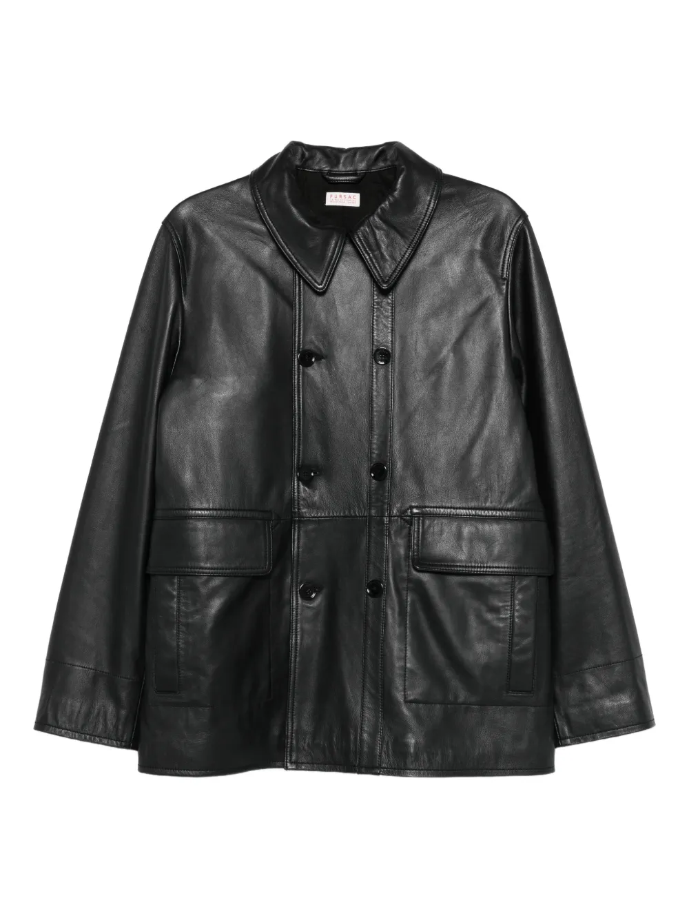 Двубортный кожаный пиджак Fursac, черный 123 503₽
