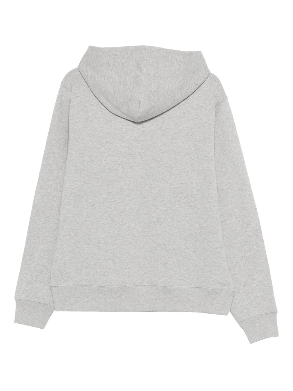 Серый худи с логотипом, карманом-кенгуру, длинными рукавами, ребристыми манжетами и нижним краем