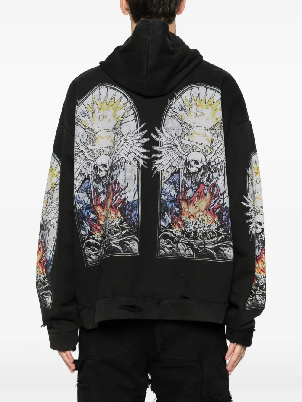 Чёрная худи с графическим принтом, эффектом потертостей и длинными рукавами