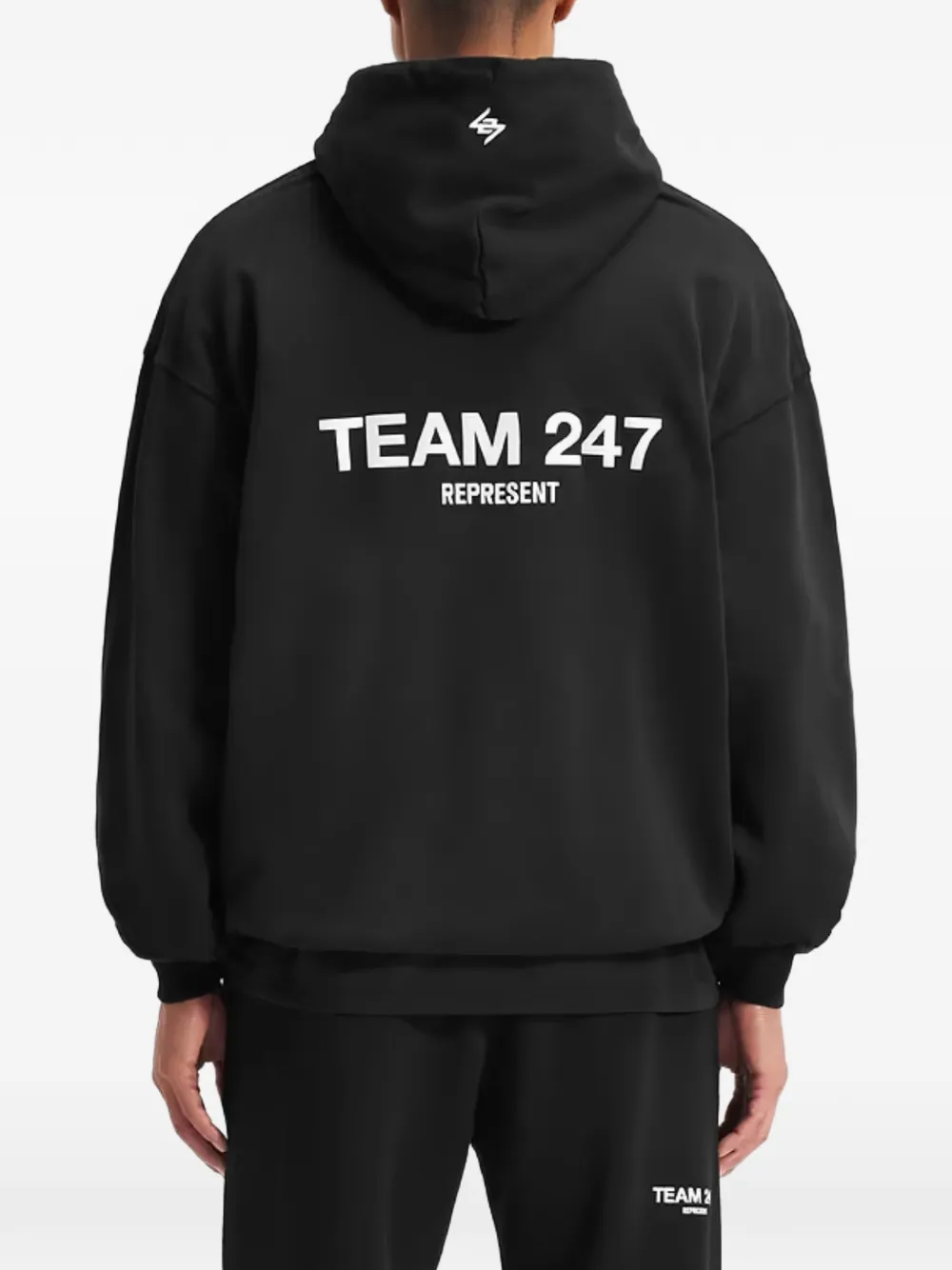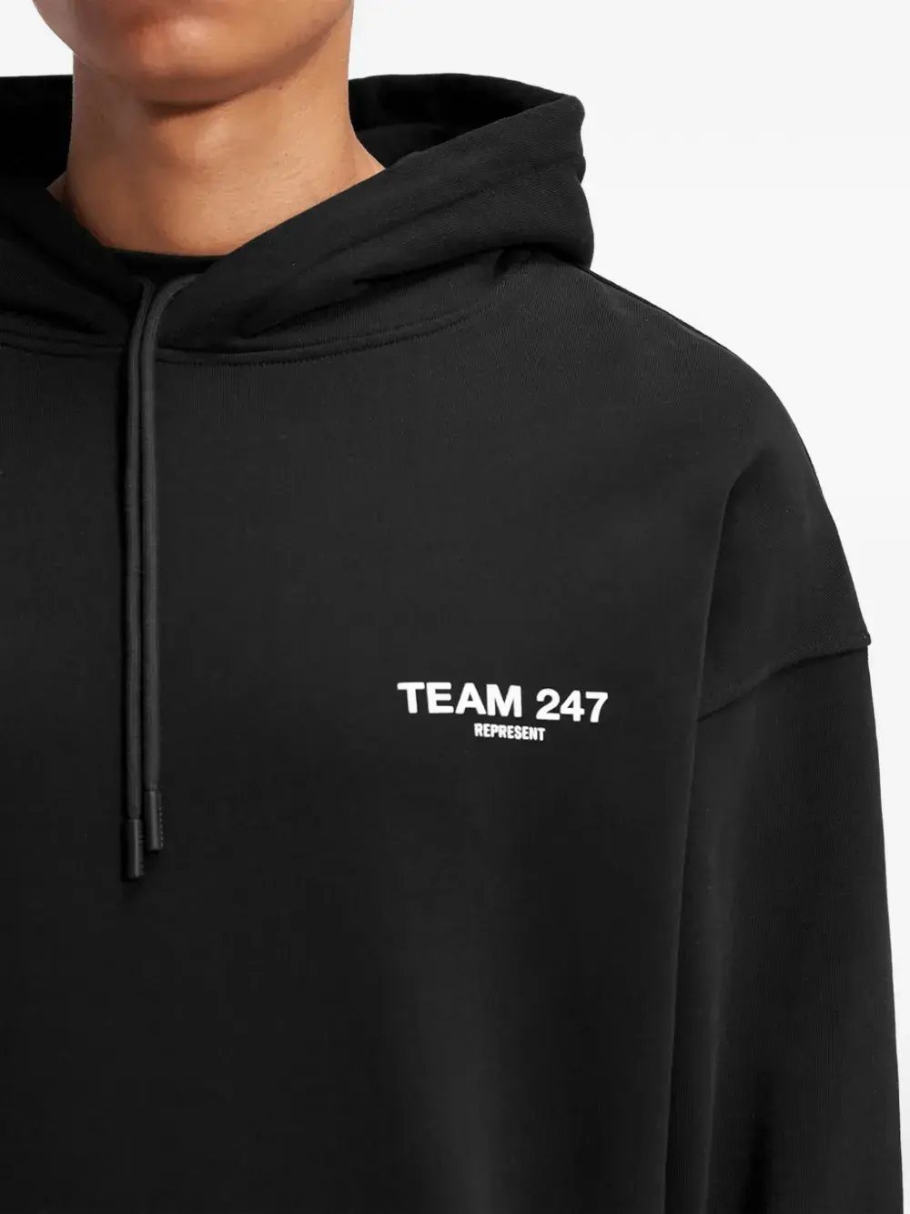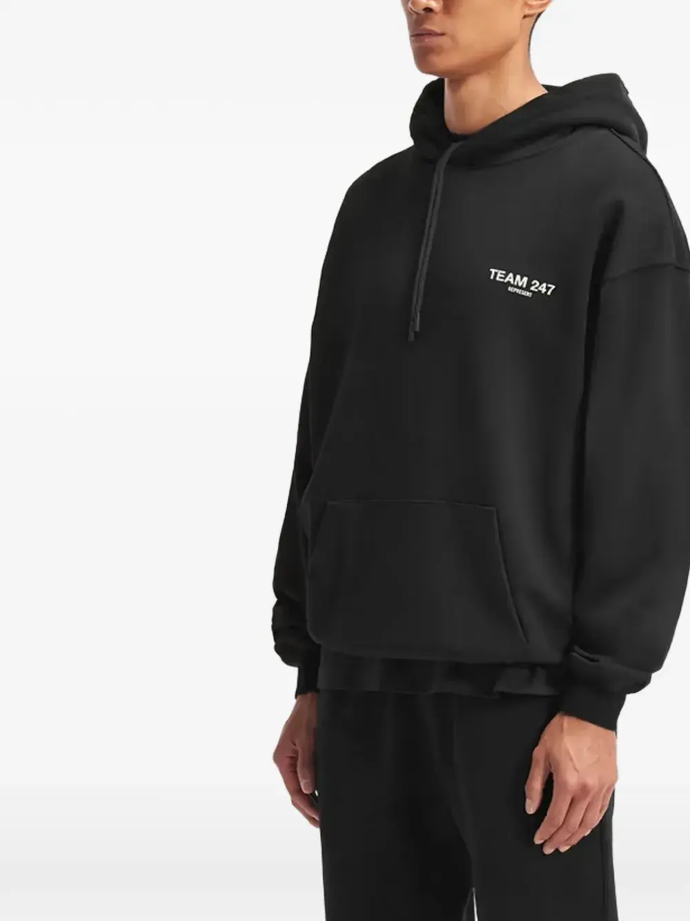 Черная худи с кулиской, карманом-кенгуру, длинными рукавами и ребристым нижним краем