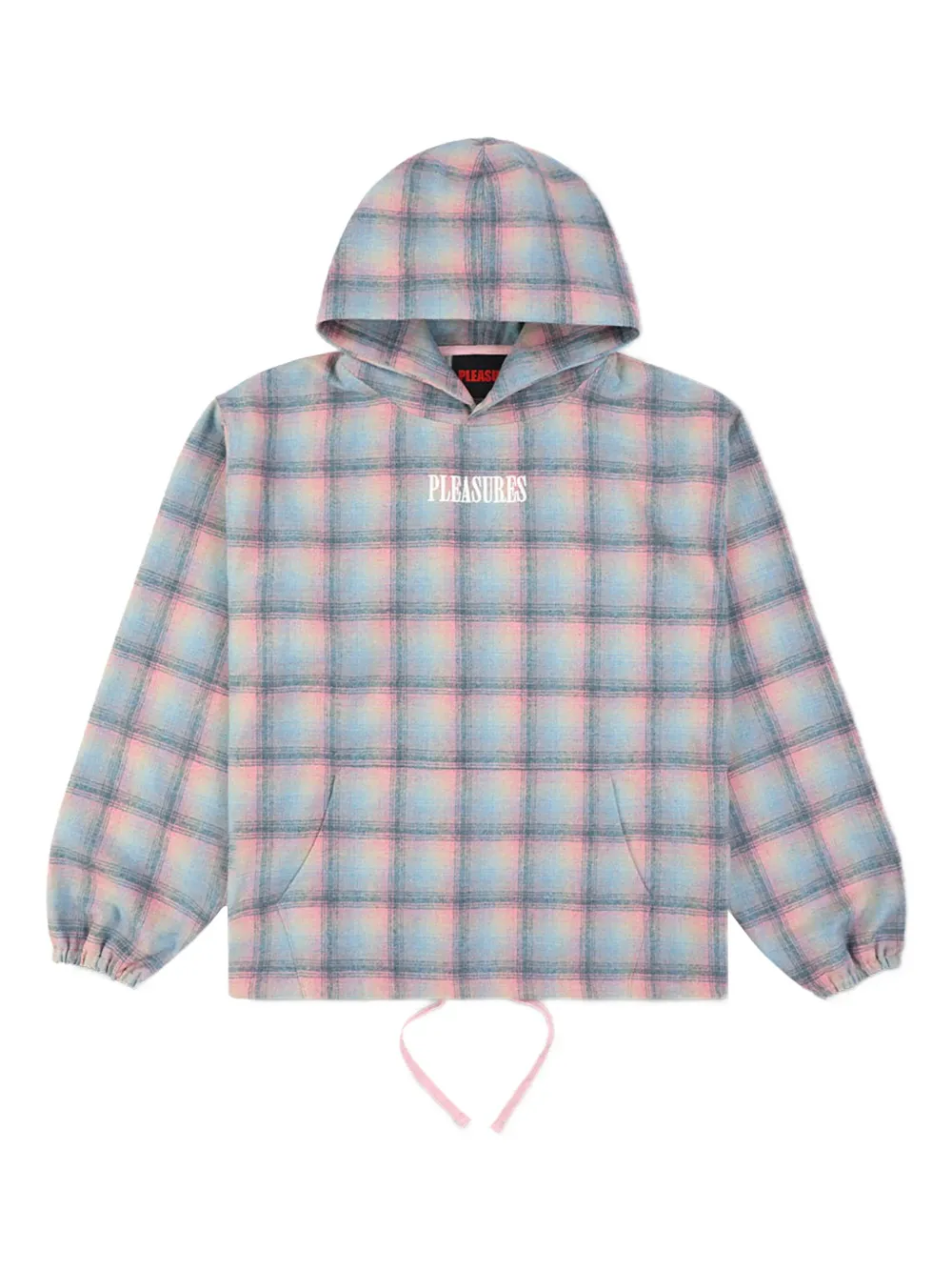 Розовое худи в клетку с фронтальным карманом и принтом логотипа