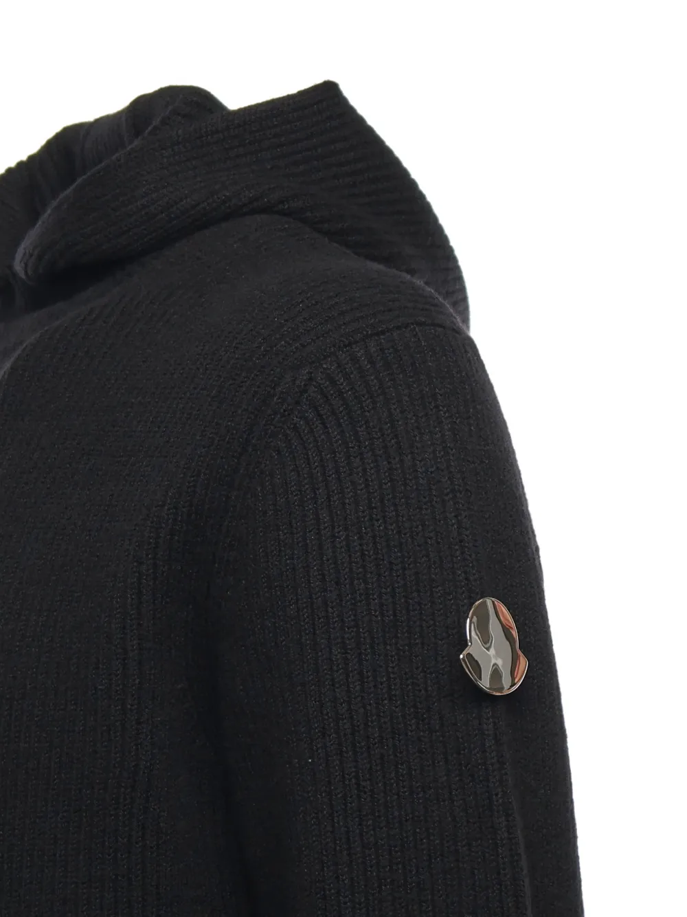 Черный вязаный топ в рубчик с капюшоном, нашивкой с логотипом и длинными рукавами