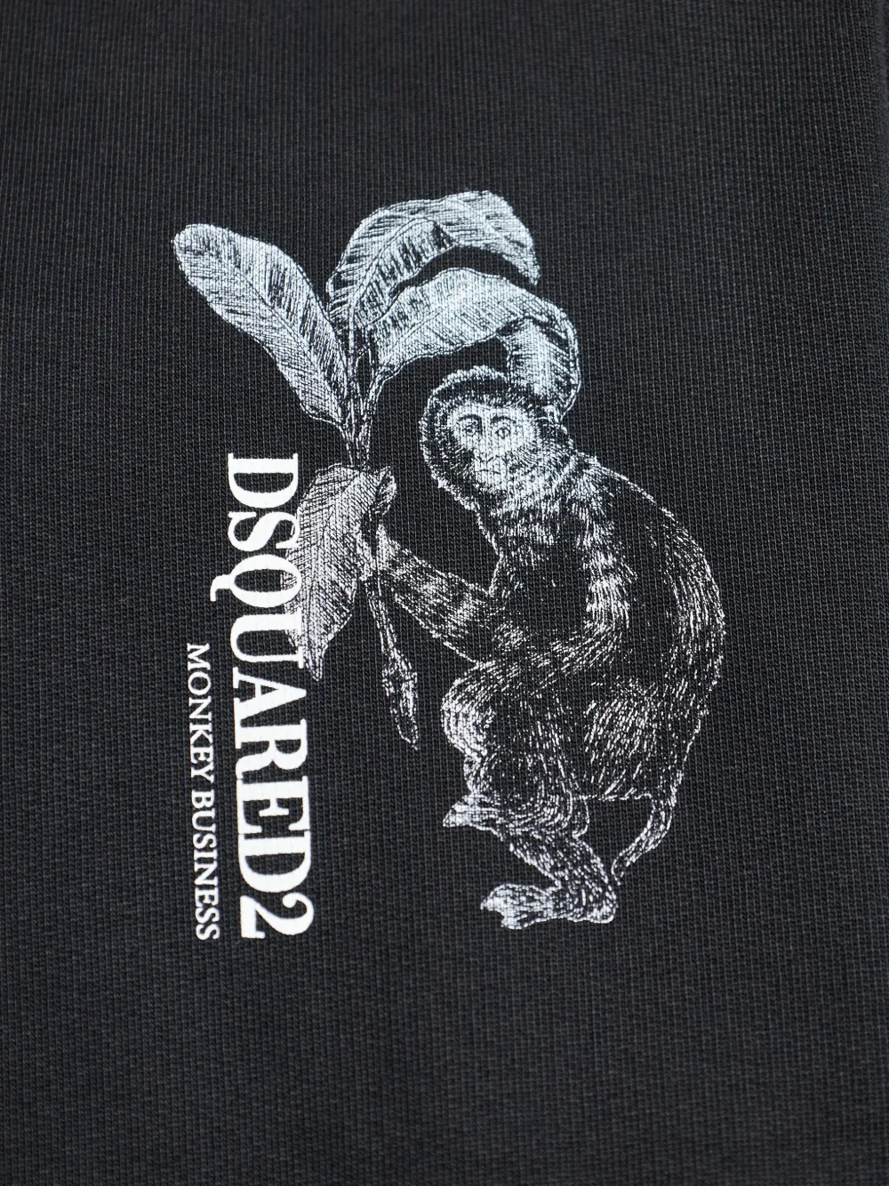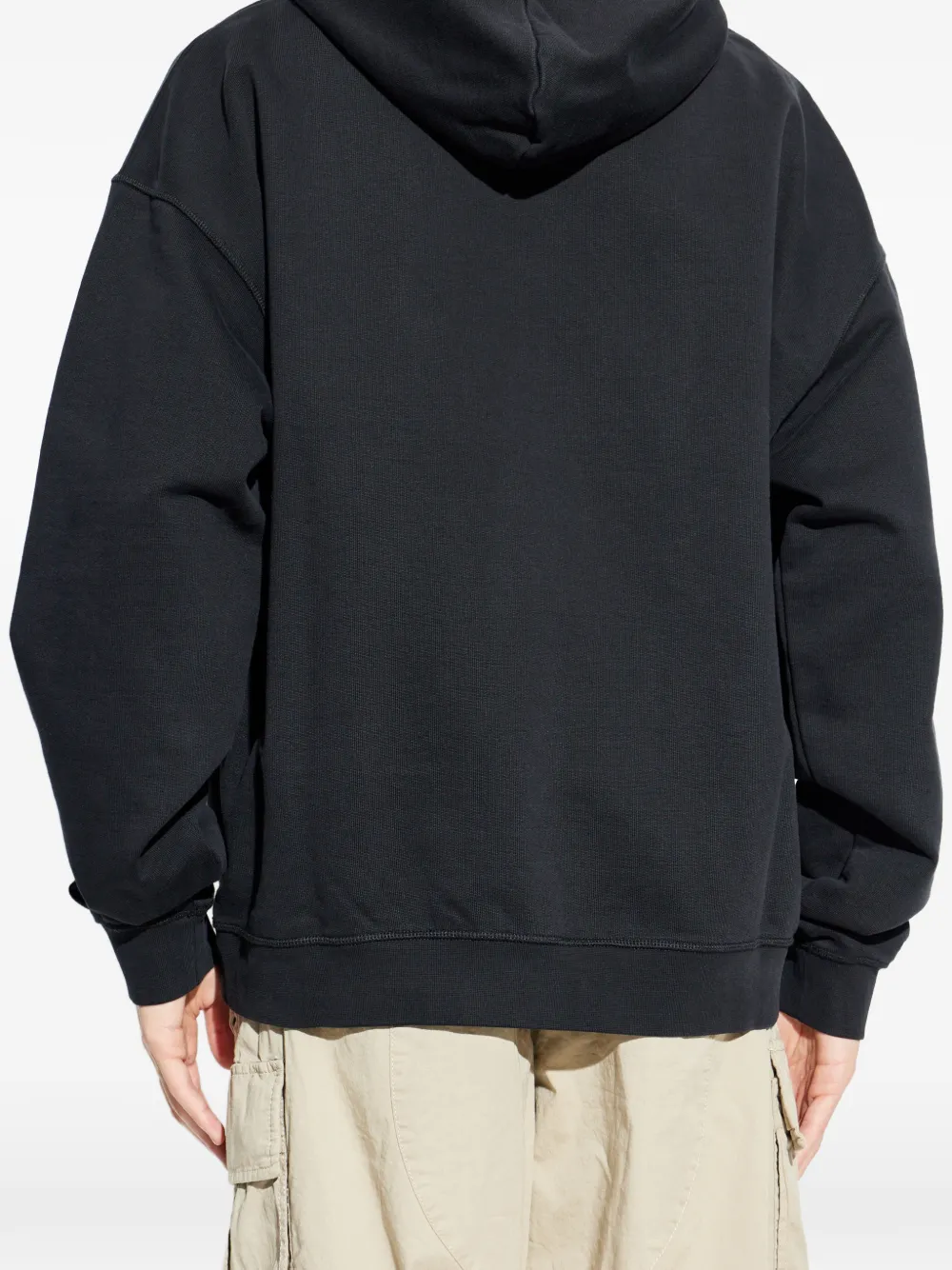 Черный худи с графическим принтом, кулиской, длинными рукавами, ребристым подолом и манжетами