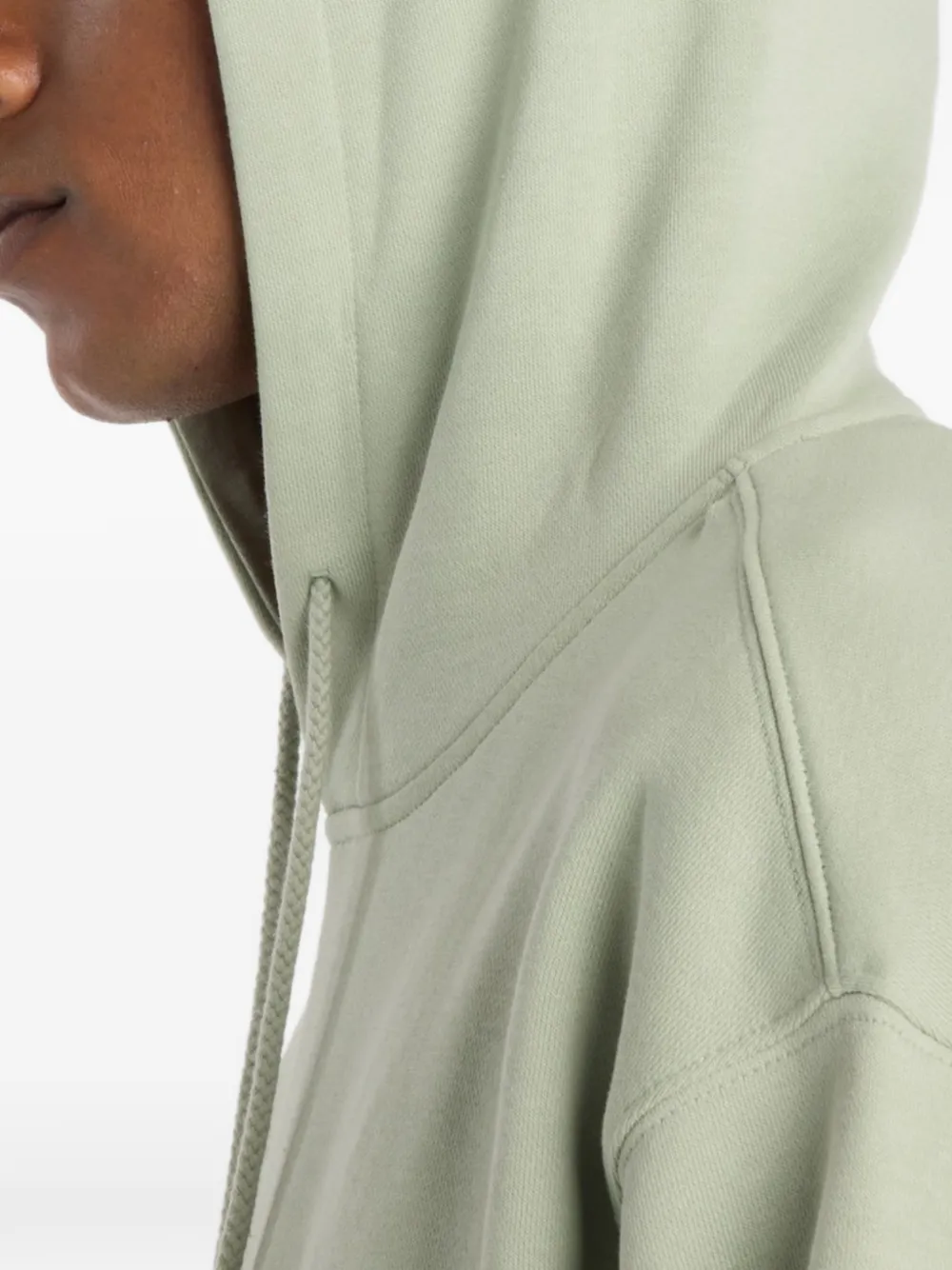 Зелёное худи с логотипом, регулируемый капюшон на шнурке, карман-кенгуру спереди, длинные рукава, ребристый низ