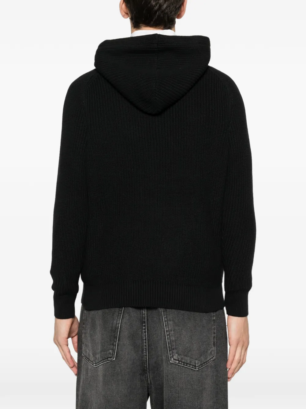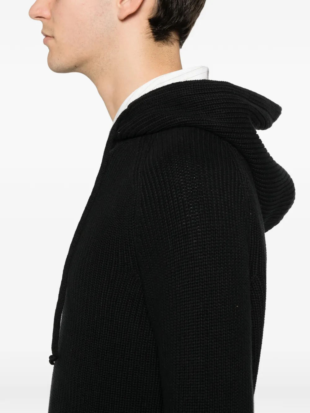Черная вязаная худи с кулиской, длинные рукава, ребристые манжеты, прямой низ