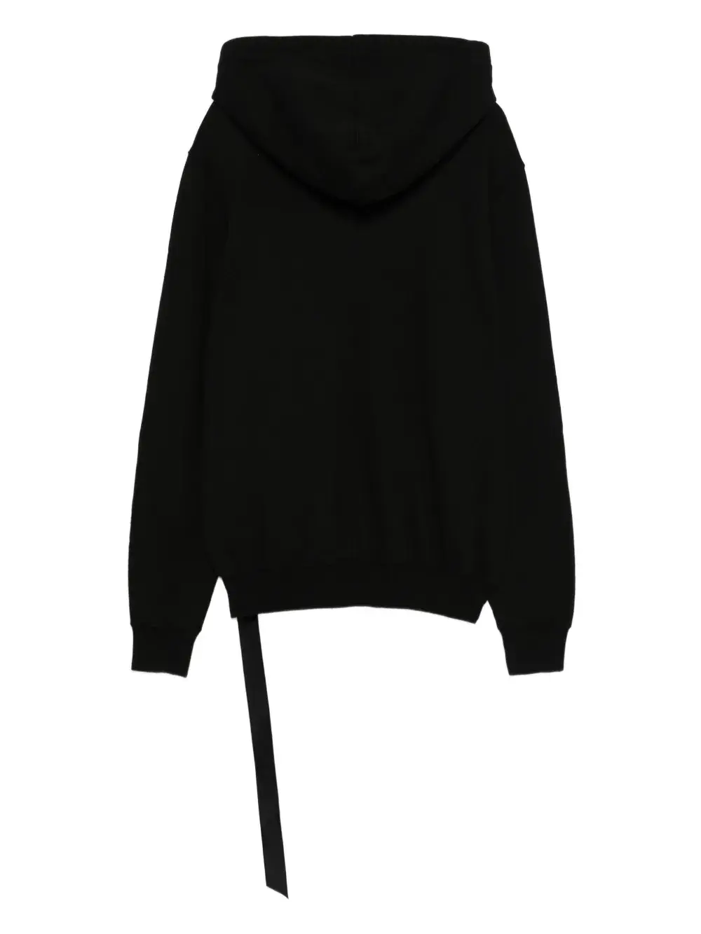Черный худи на кулиске, длинные рукава, асимметричный подол, боковые завязки, свободный крой