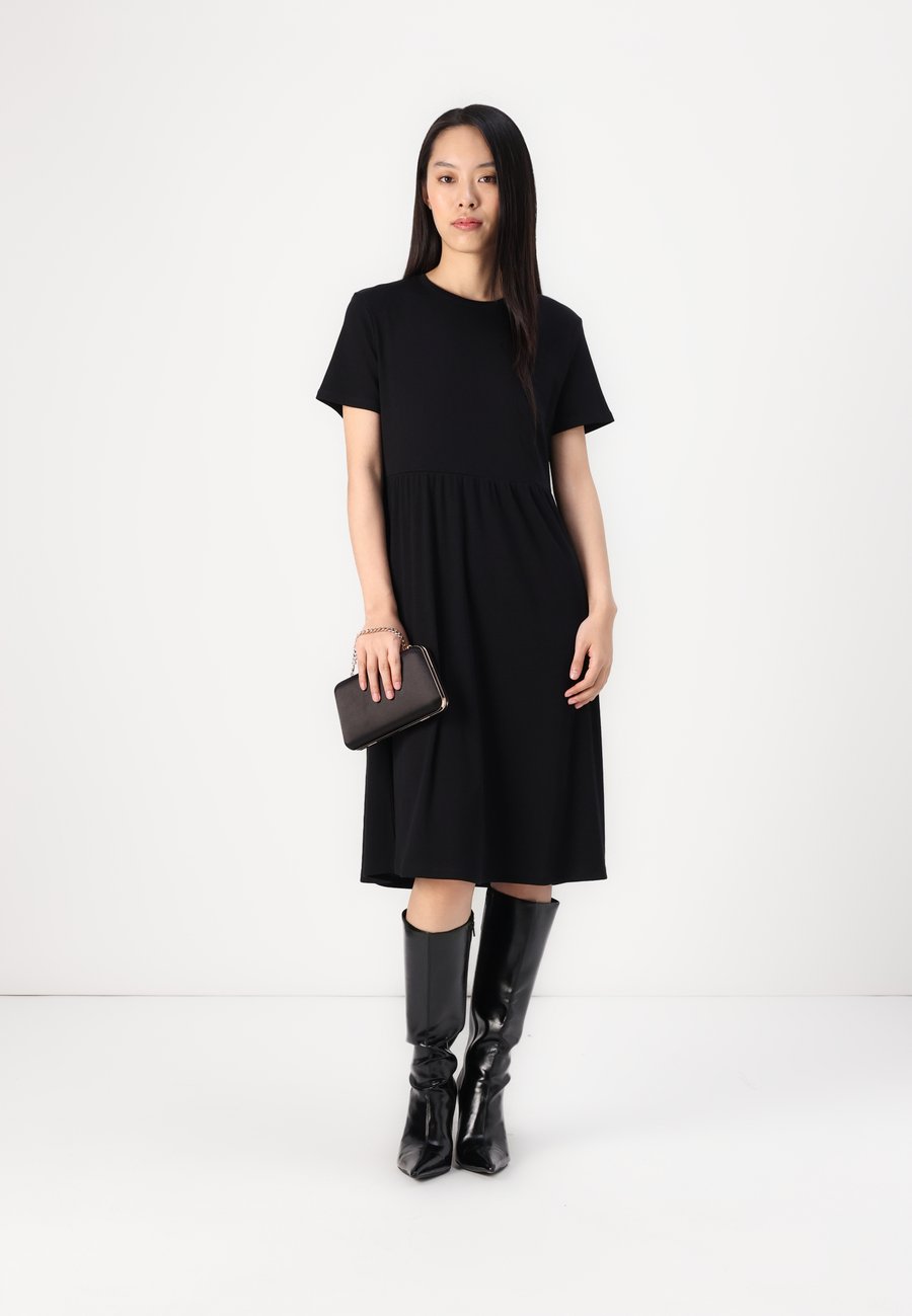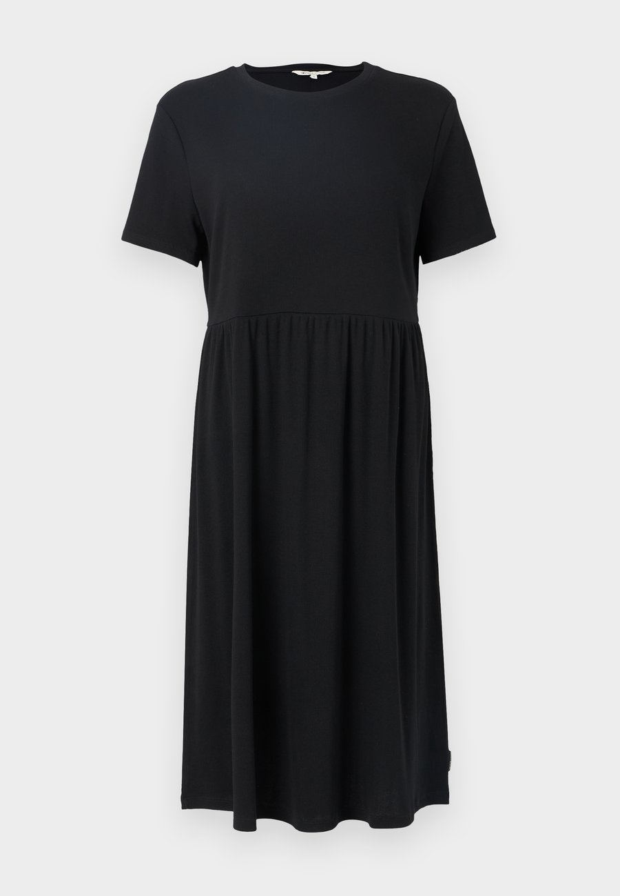 Свободное платье миди с ребристой текстурой. Вырез: круглый.Материал и уход