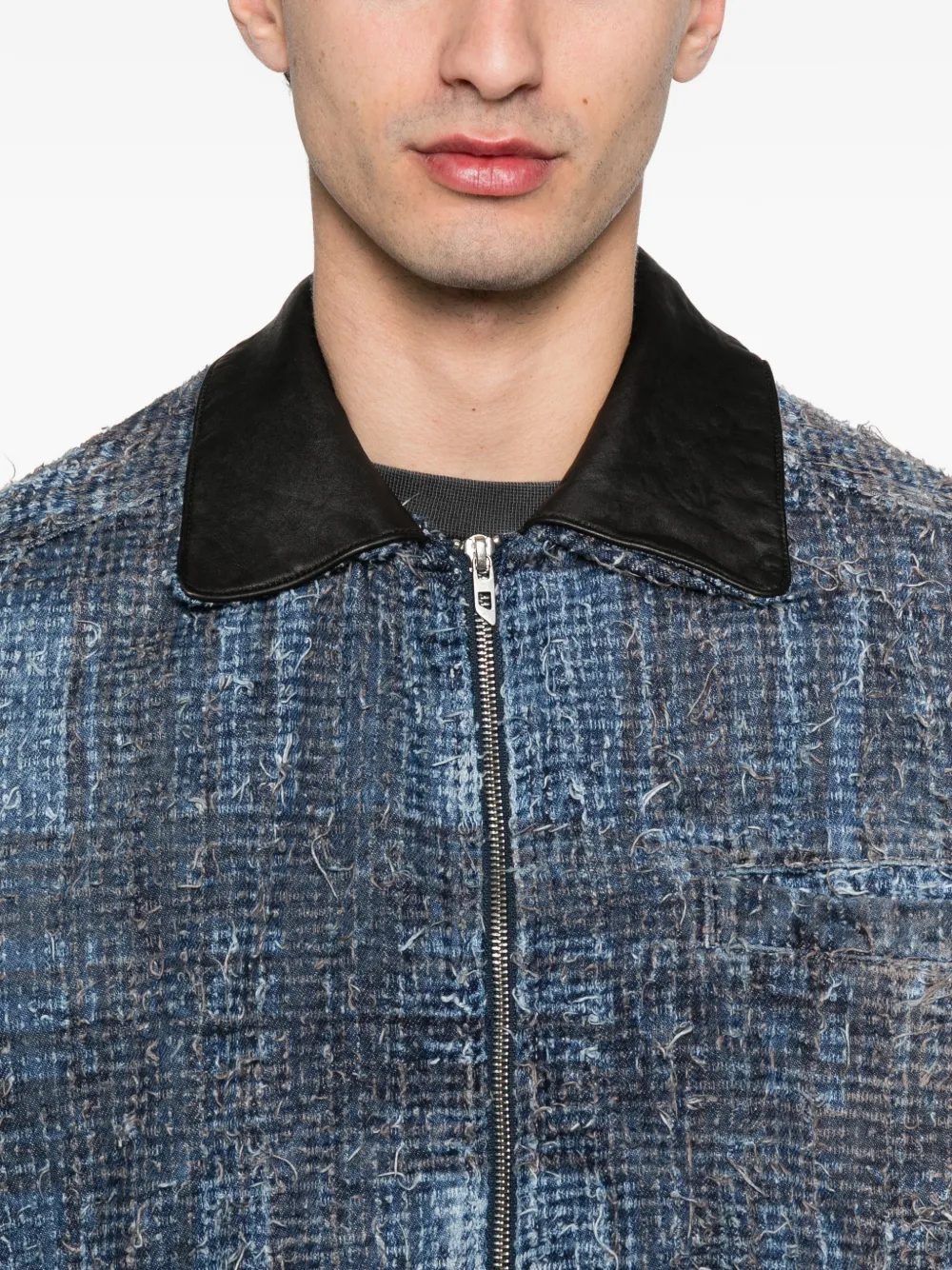 Синий кожаный воротник в клетку, застежка-молния, длинные рукава, фронтальные карманы