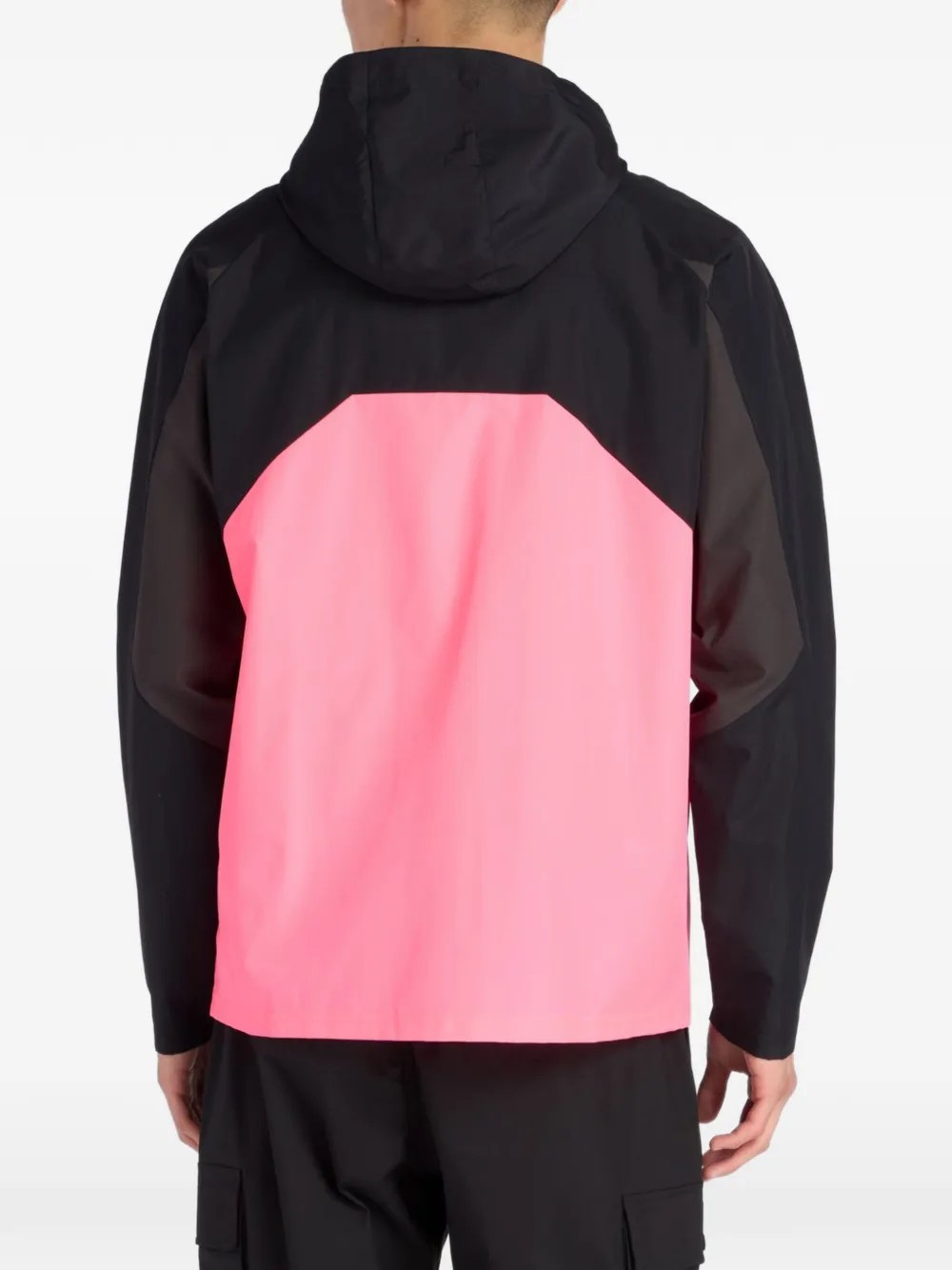 Черная толстовка с капюшоном, застежкой-молнией, передними карманами, панельным дизайном и деталями с логотипом
