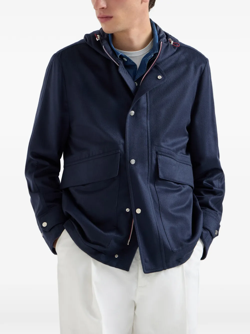 Кашемировая куртка с капюшоном Brunello Cucinelli, синий