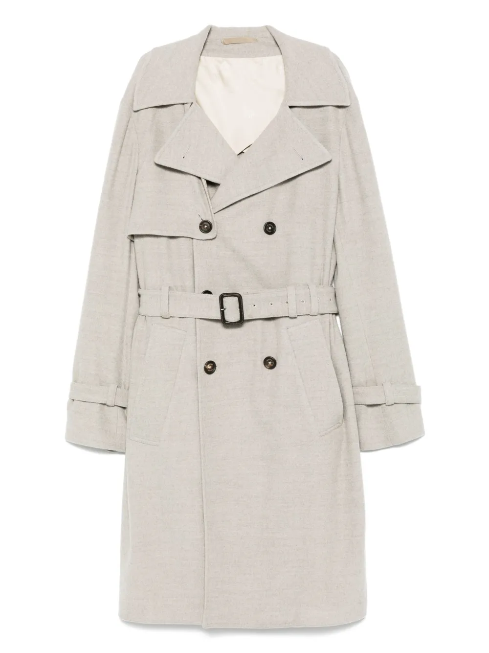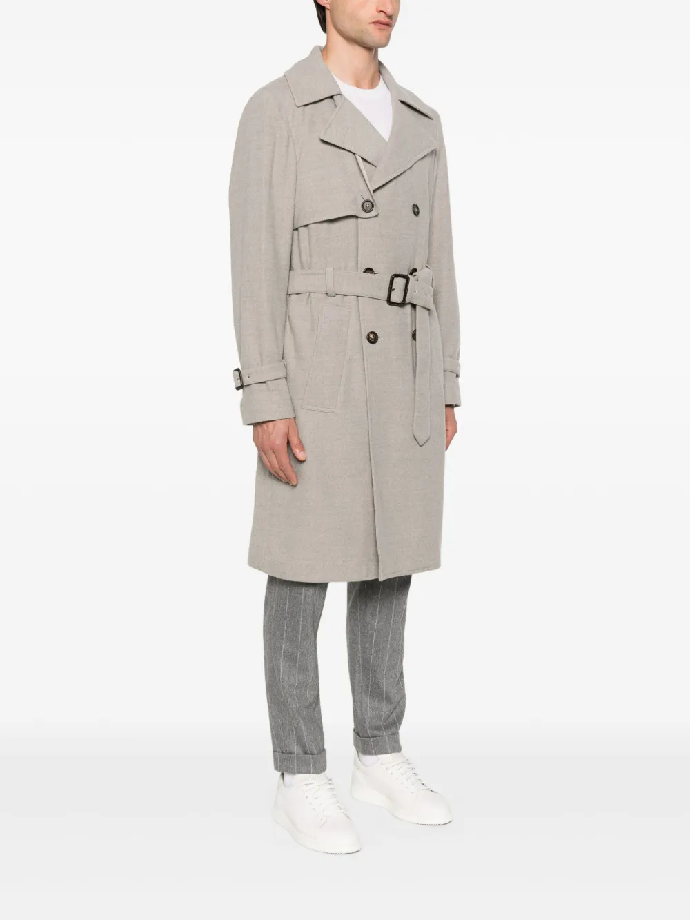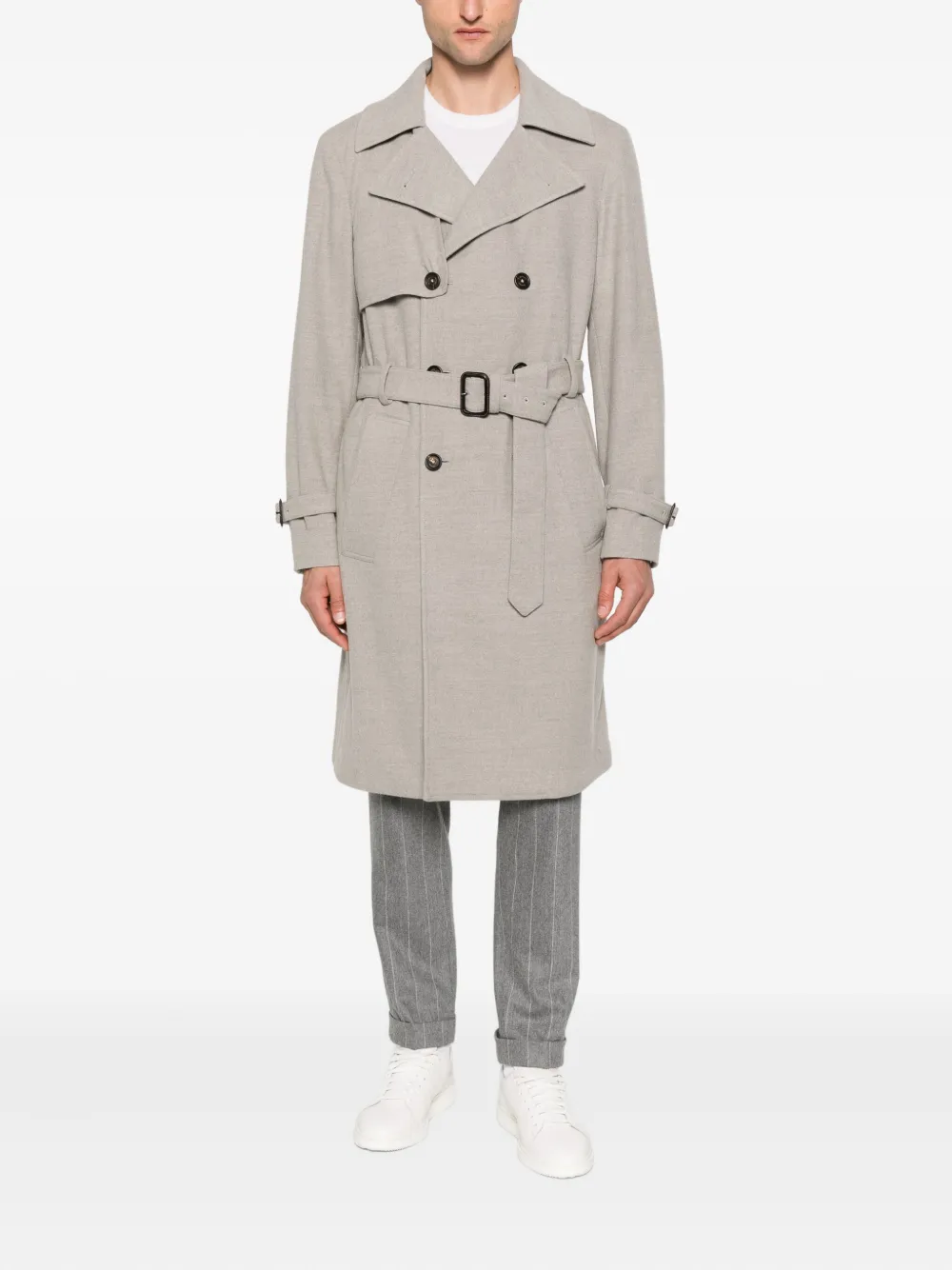Двубортный тренч с поясом Eleventy, серый