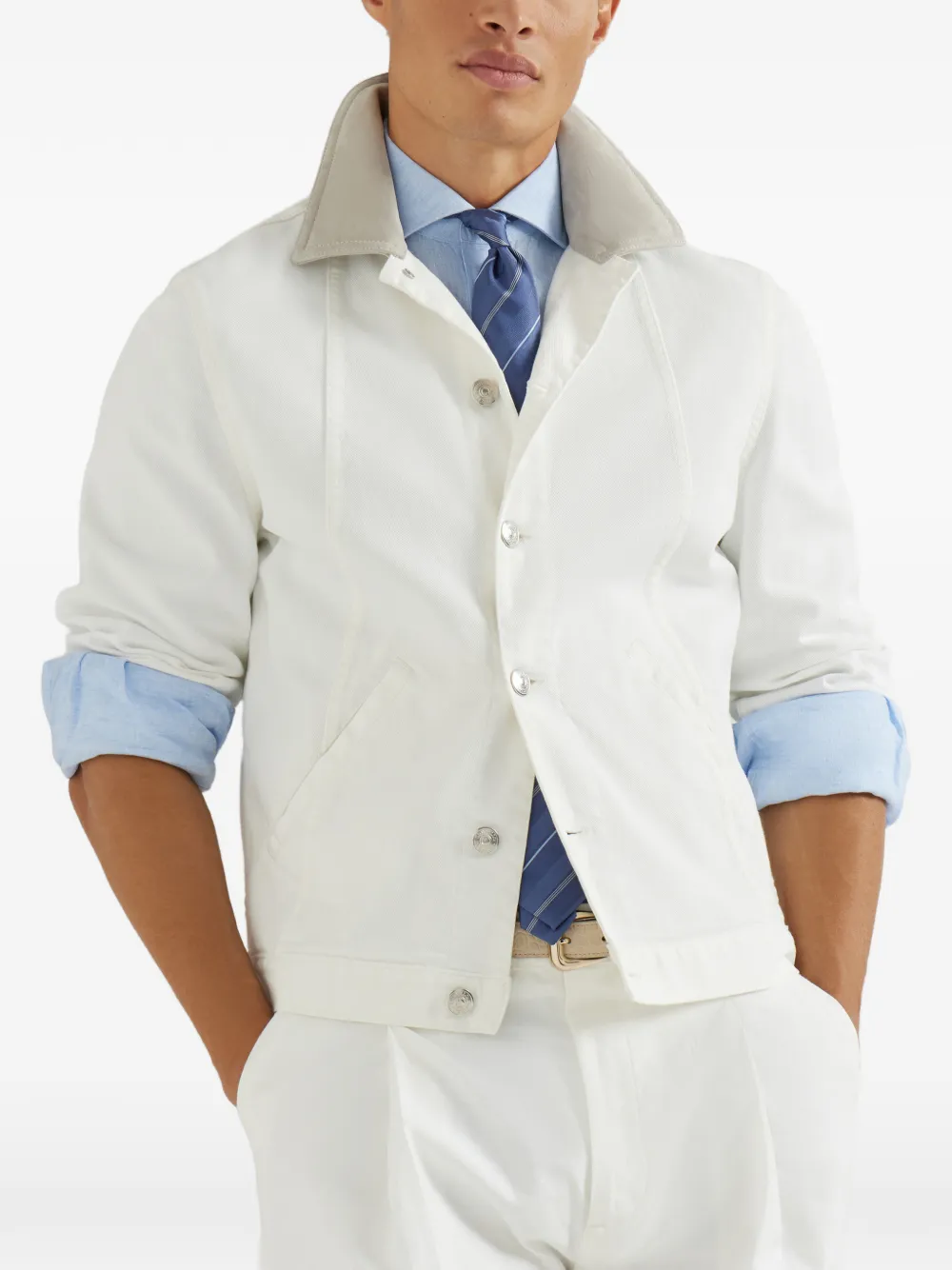 Джинсовая куртка на пуговицах Brunello Cucinelli, белый