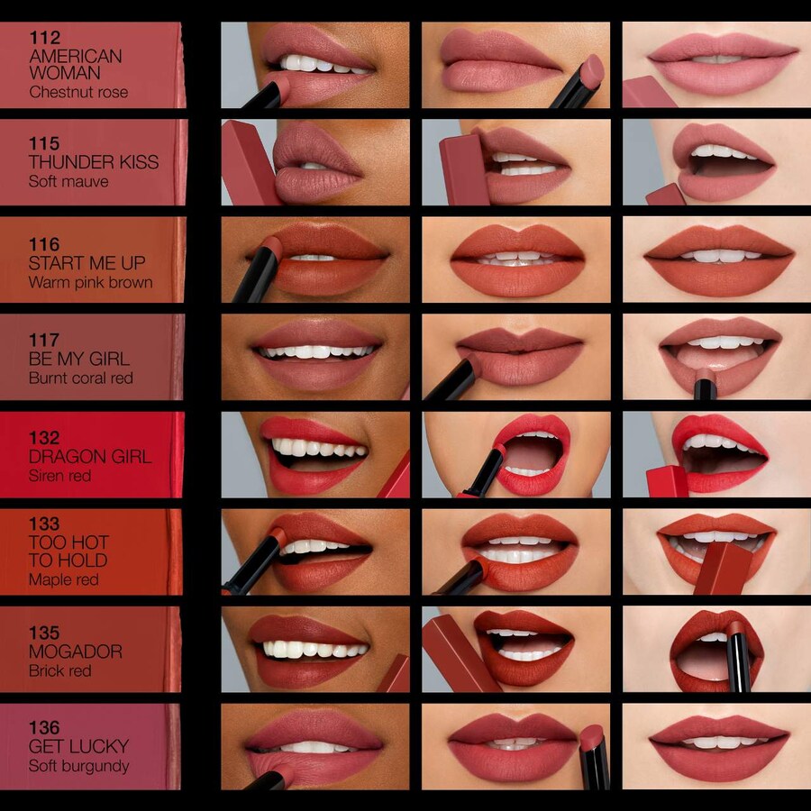 Что еще нужно знать: Эта легкая кремово-матовая помада легко наносится, обеспечивая насыщенный цвет, который держится до десяти часов и остается комфортным в течение всего дня. Формула с мгновенным эффектом нанесения одним движением создает гладкое матовое покрытие. Доступна в 12 устойчивых к переносу оттенках.