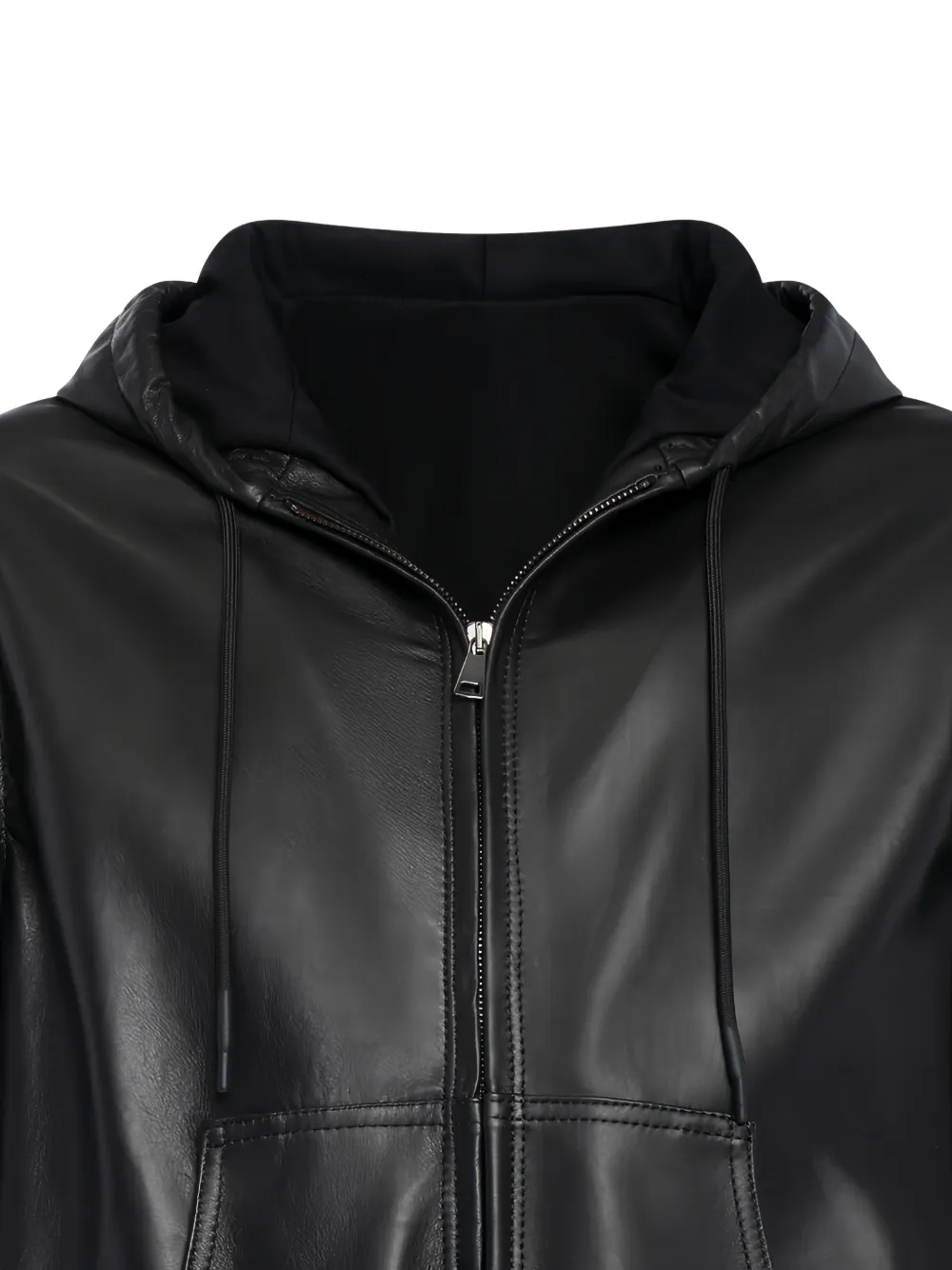Чёрный капюшон на шнурке, эластичный край, эластичные манжеты, застёжка-молния